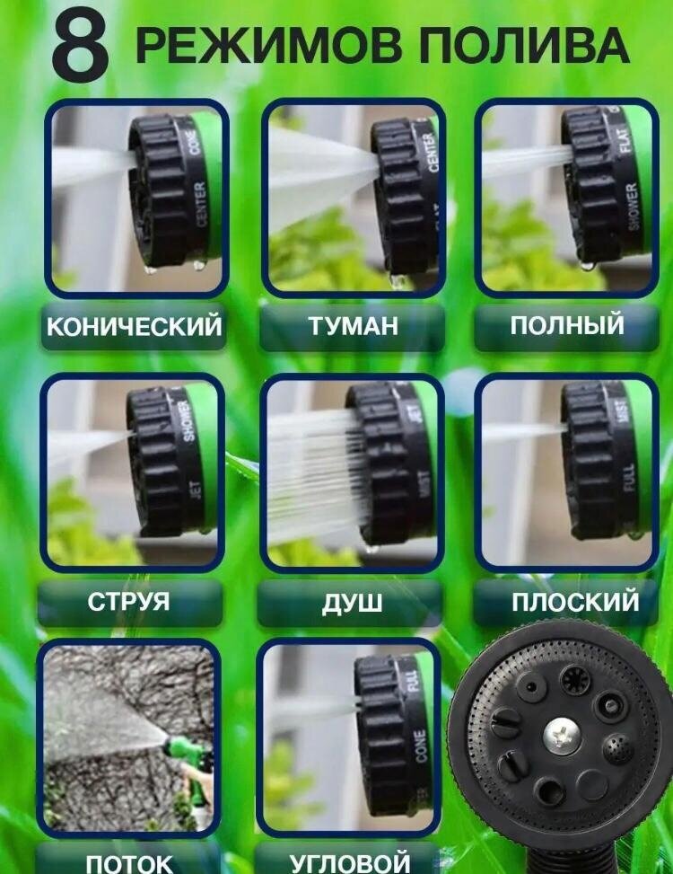 Пистолет поливочный , насадка на шланг , 8 режимов разбрызгивания , зеленый интересное: