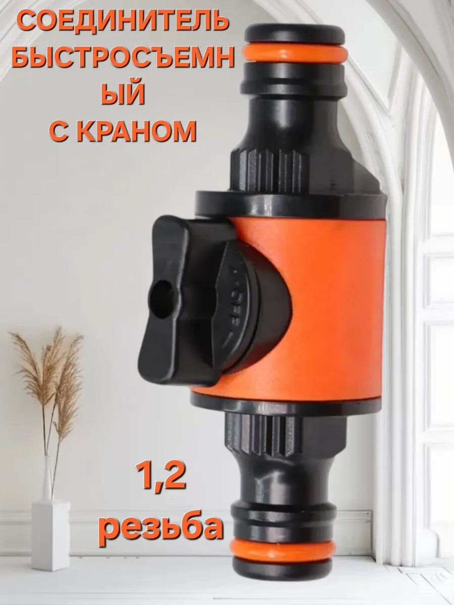 Коннектор, для шланга, быстросъем, с краном, оранжево-желтого цвета интересное: