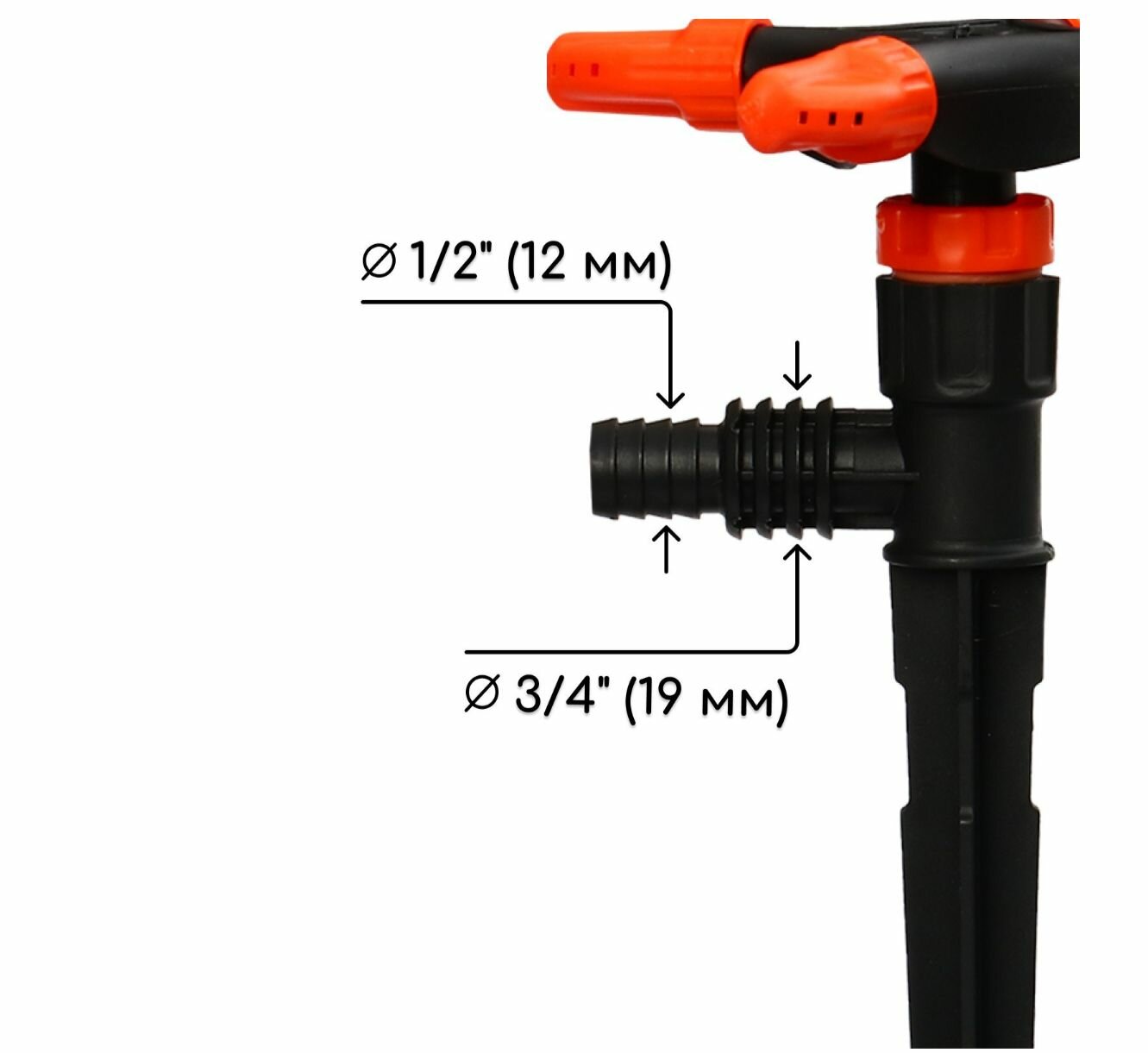 Купить Распылитель 4 лепестковый, штуцер под шланги 1/2" (12 мм) 3/4" (19 мм), пика, пластик