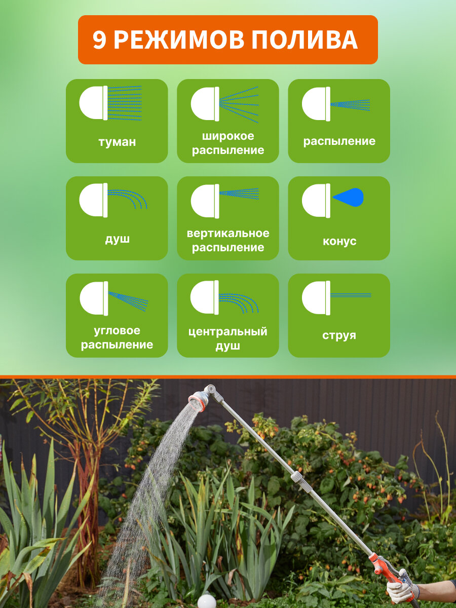 Распылитель для воды на штанге ЧЕТЫРЕ СЕЗОНА, 9 режимов работы