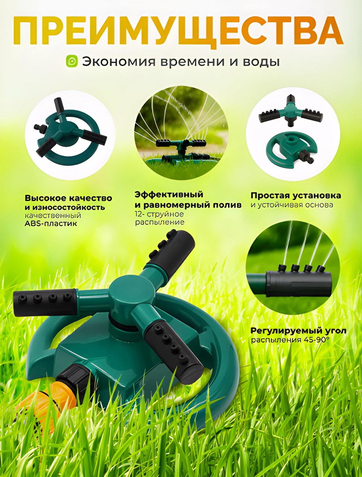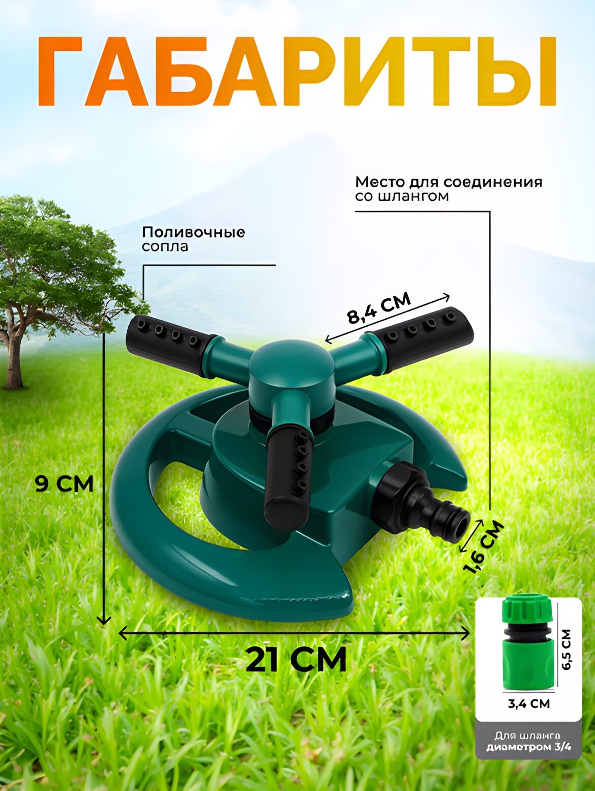 Дождеватель для полива круговой, 28 м2: предназначен для автоматического орошения; в процессе работы вода проходит через специальные сопла