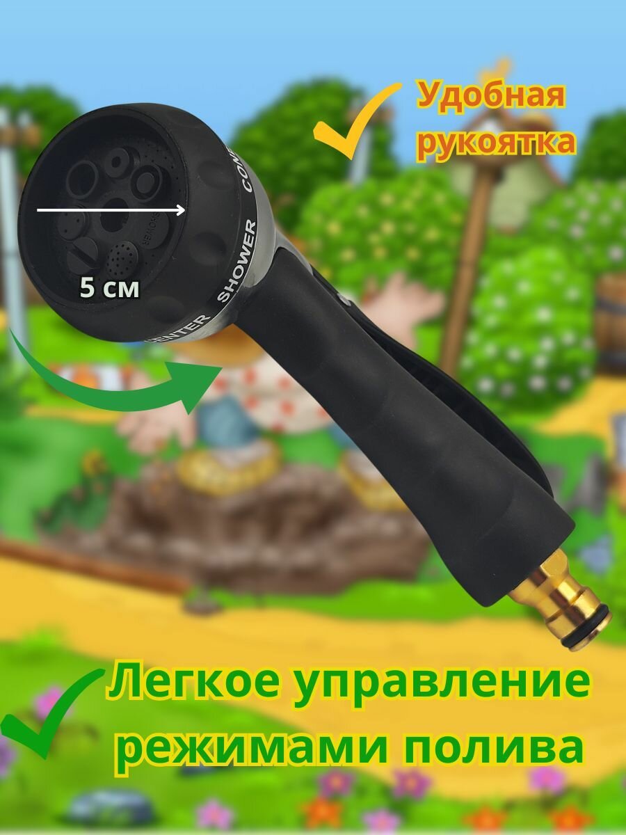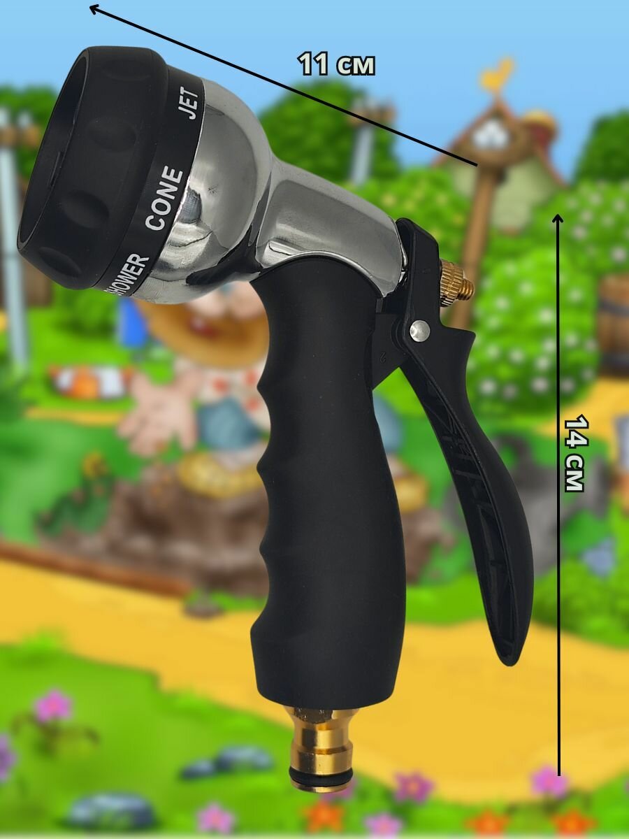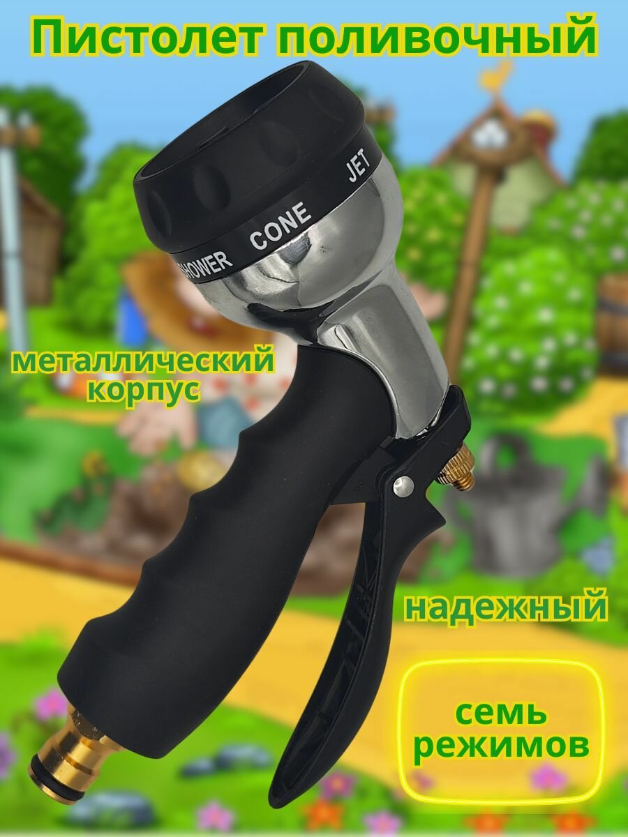 Пистолет поливочный на шланг металлический, 7 режимов разбрызгивания, регулировка давления, под коннектор быстросъемный интересное: