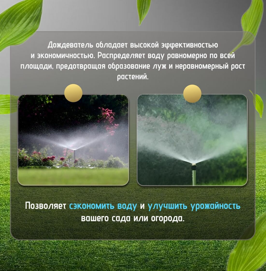 Дождеватель для полива круговой, 28 м2: предназначен для автоматического орошения; в процессе работы вода проходит через специальные сопла
