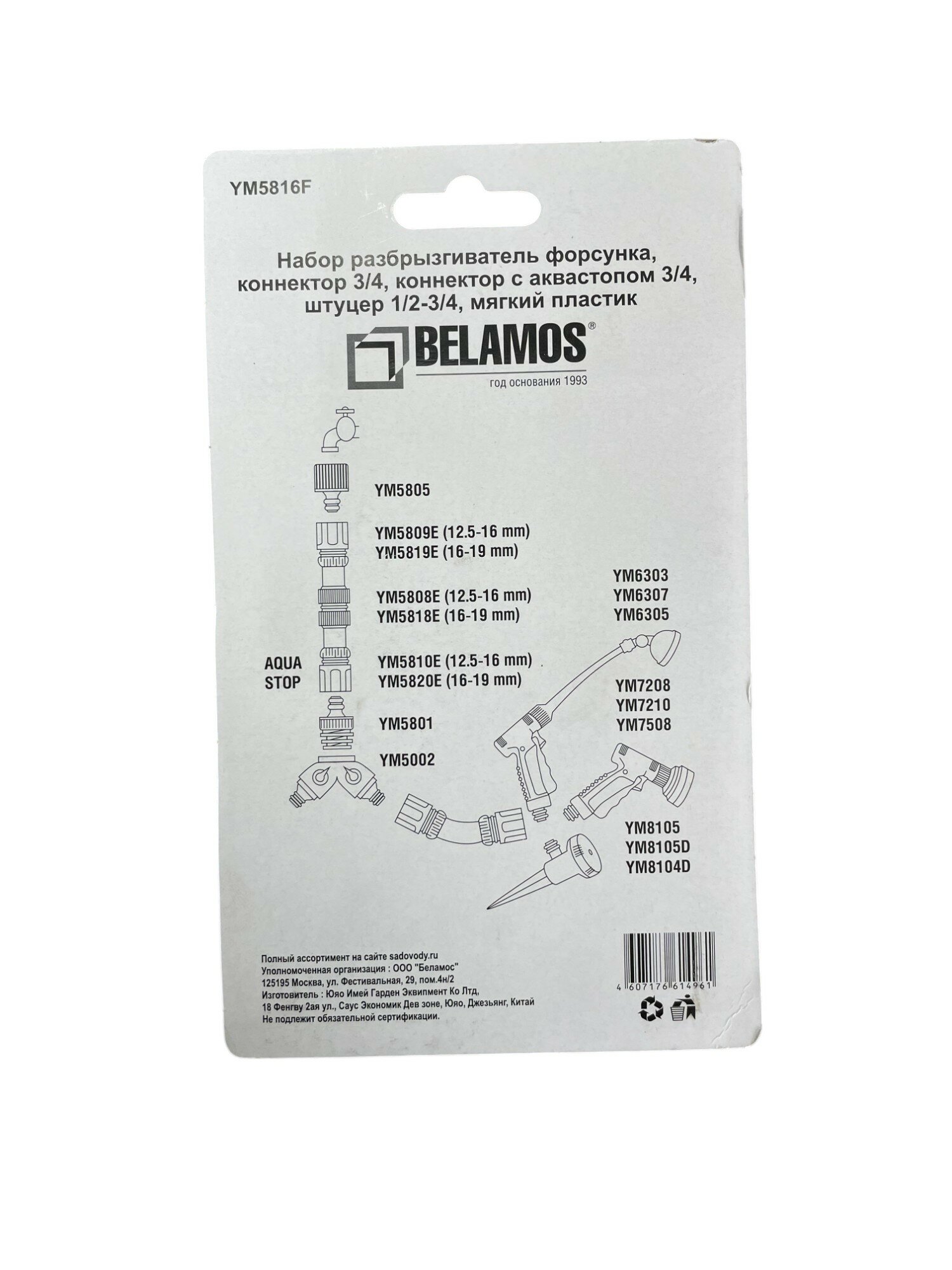 Набор для полива Belamos YM5816F, с насадкой-разбрызгивателем и коннекторами, 3/4" интересное: