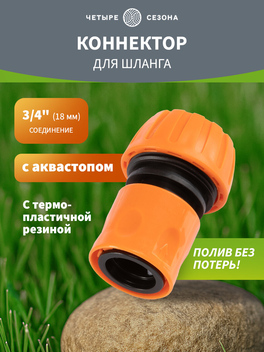 Купить Коннектор для шланга, быстросъемный 3/4" с аквастопом четыре сезона