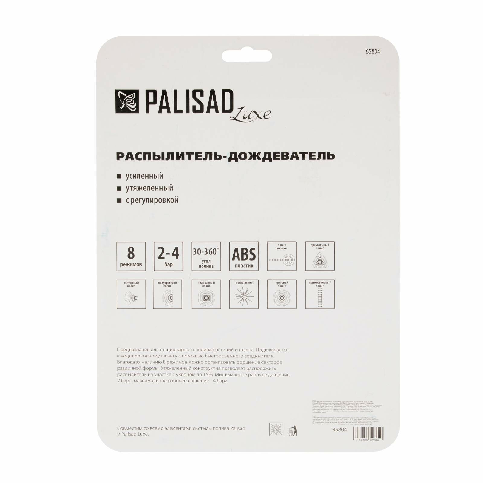 Распылитель-дождеватель Palisad LUXE 8 режимов, с регулировкой, утяжеленная база 65804 интересное: