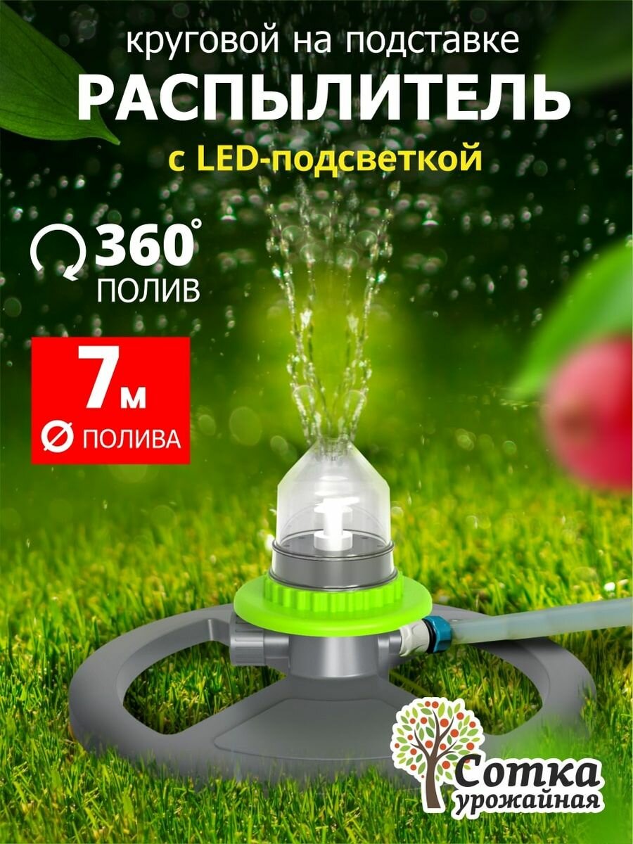 Купить Распылитель для полива круговой с LED-подсветкой под коннектор на подставке 'Урожайная сотка'