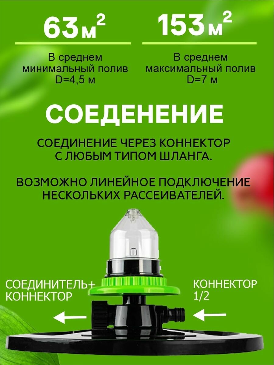 Дождеватель для полива круговой, 28 м2: предназначен для автоматического орошения; в процессе работы вода проходит через специальные сопла