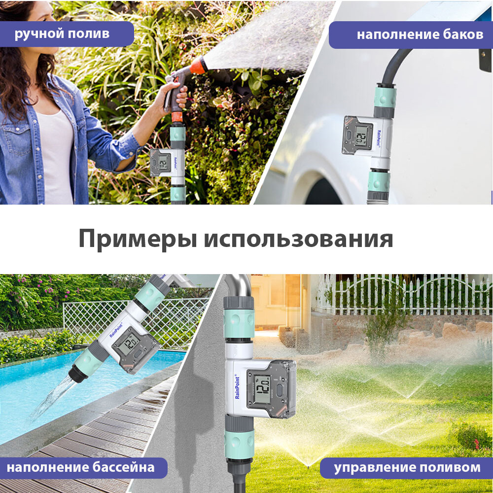 Счетчик расхода воды Rainpoint HCS008, для шланга, ЖК-дисплей, 3 батарейки интересное: