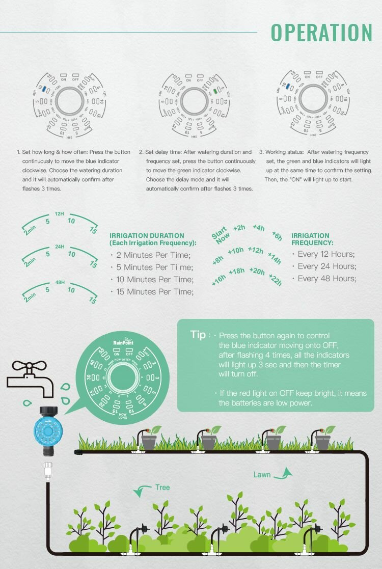 Таймер полива с клапаном для подачи воды Rainpoint 1М с индикатором режимов, Одноканальный интересное: