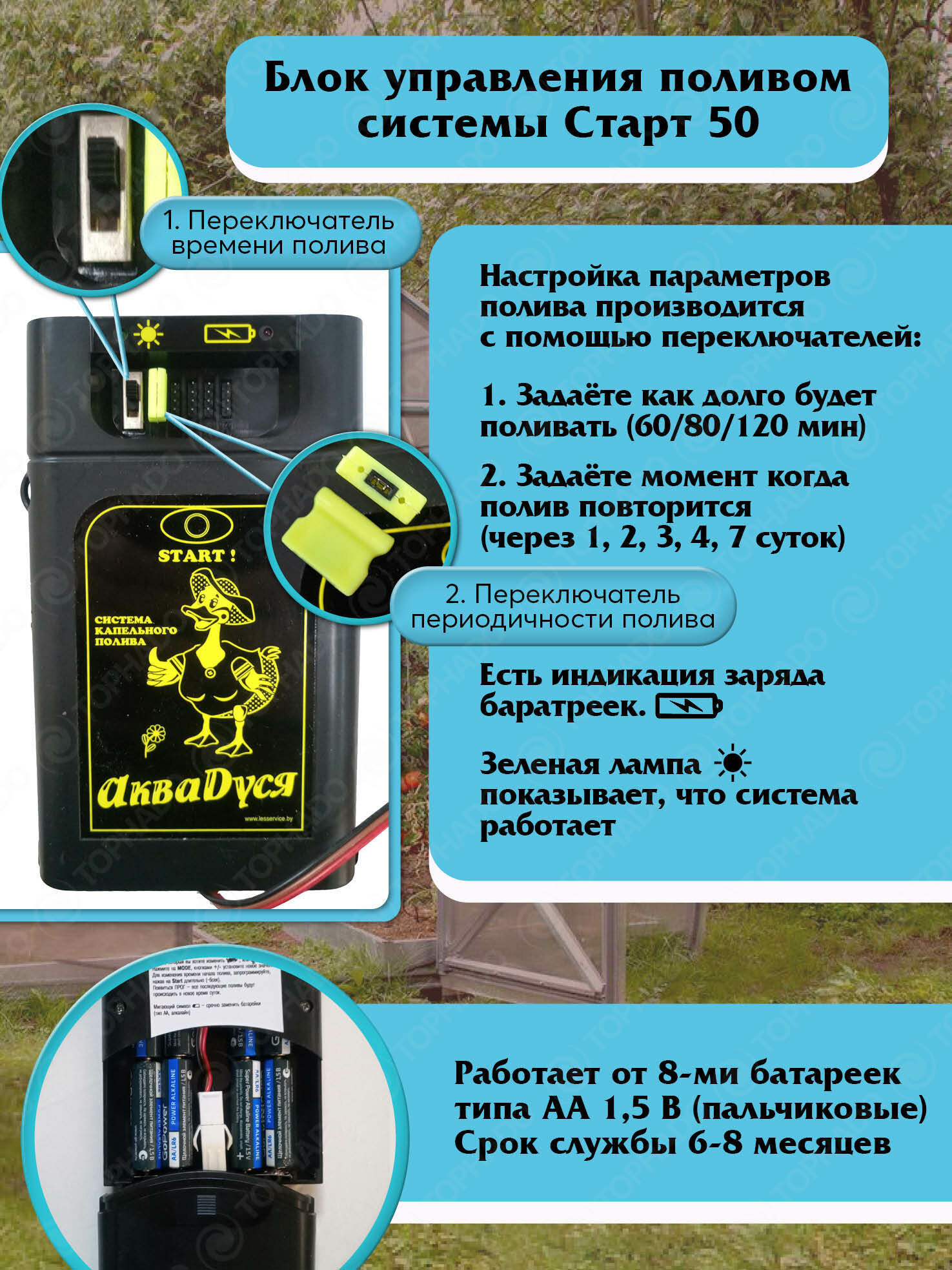 Система автоматического полива АкваДуся "Старт", 62 точки полива, автоматическое управление интересное: