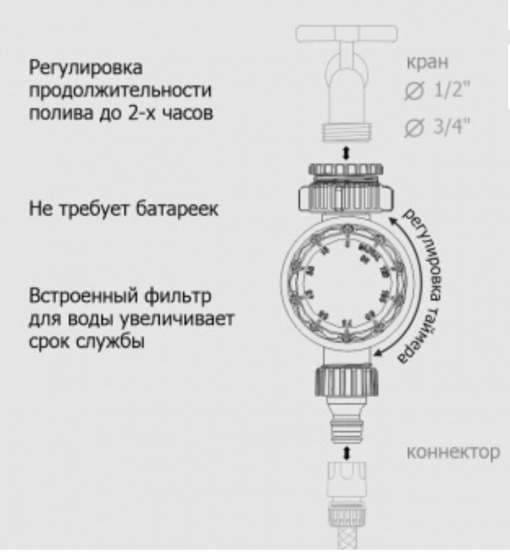 Таймер для полива механический под коннектор на трубу 1/2х3/4 (2часа) интересное: