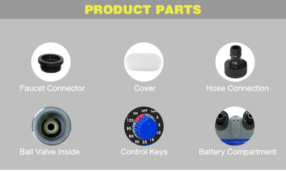 Таймер для полива, до 2-х часов, с набором переходников для подключения, пластик, Greengo