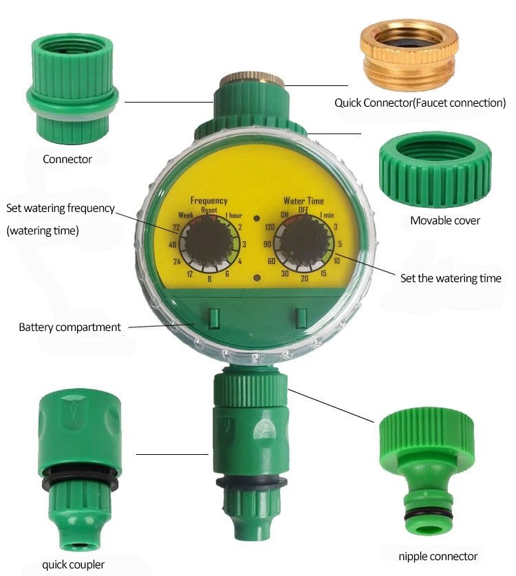Таймер для полива, до 2-х часов, с набором переходников для подключения, пластик, Greengo