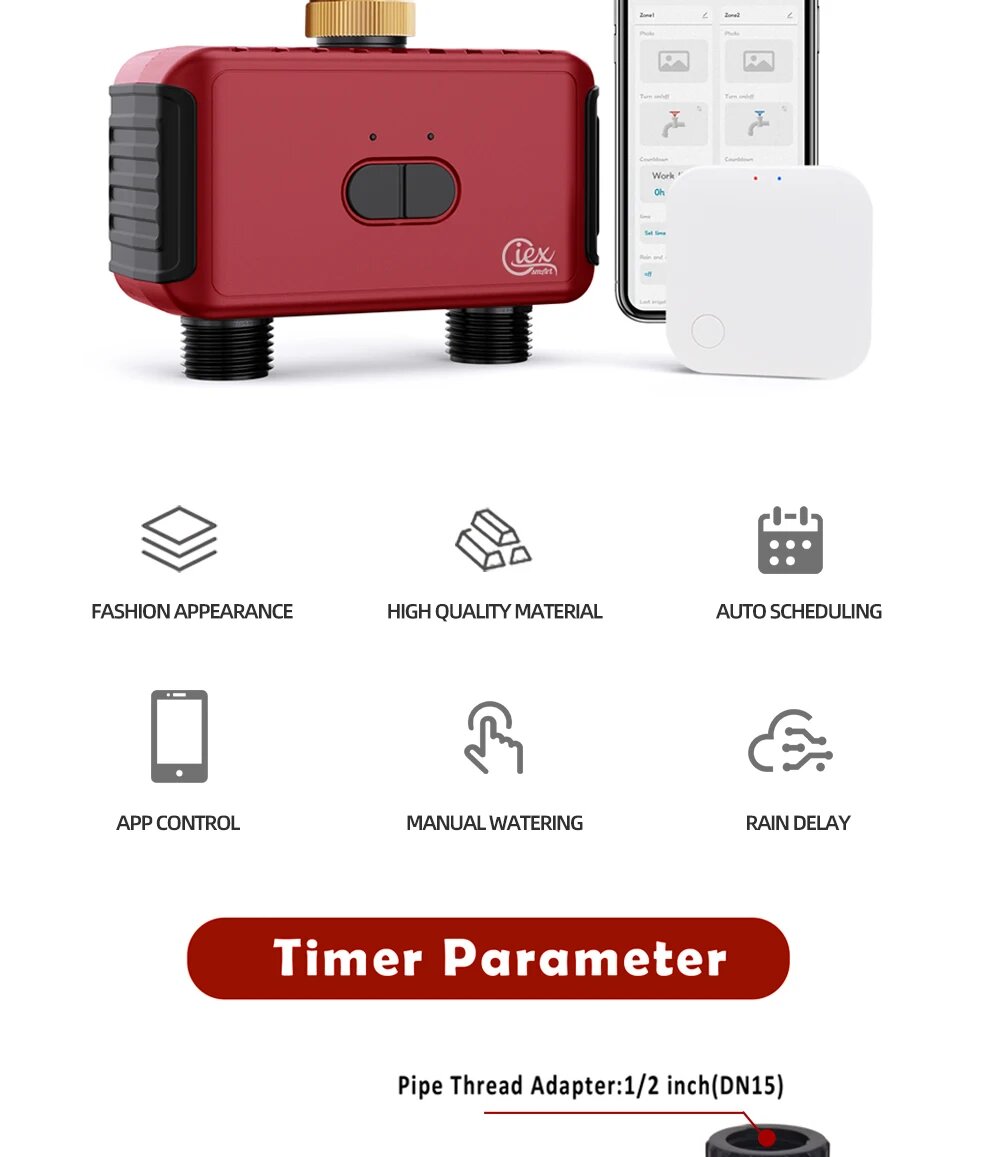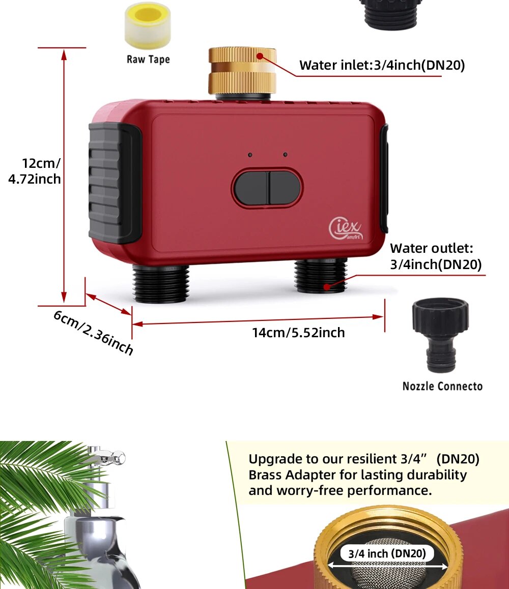 Wi-Fi таймер полива Giexperience 2 зоны, Красный интересное: