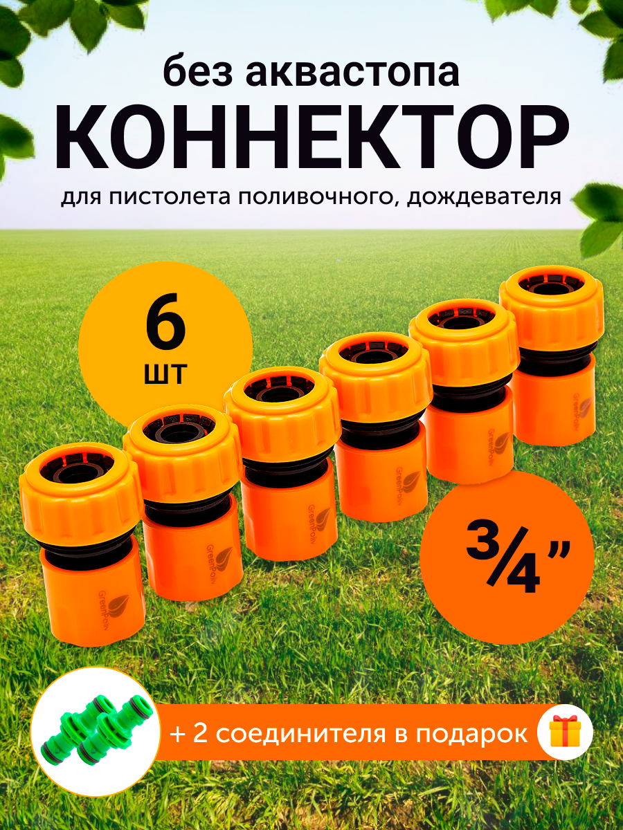 Коннекторы для шланга GreenPoliv, быстросъемные, 3/4 без аквастопа, ABS-пластик, комплект 6 шт и 2 соединителя интересное: