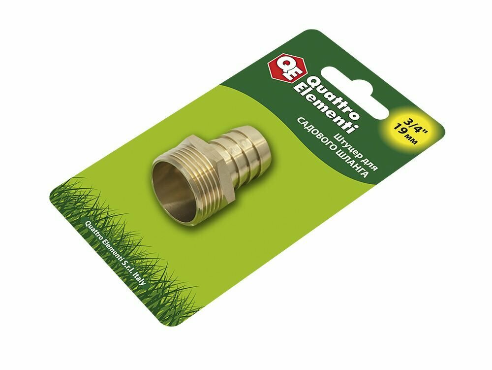 Соединитель/штуцер для шланга QUATTRO ELEMENTI внеш. резьба 3/4" - "ёлочка" 19 мм, латунь интересное: