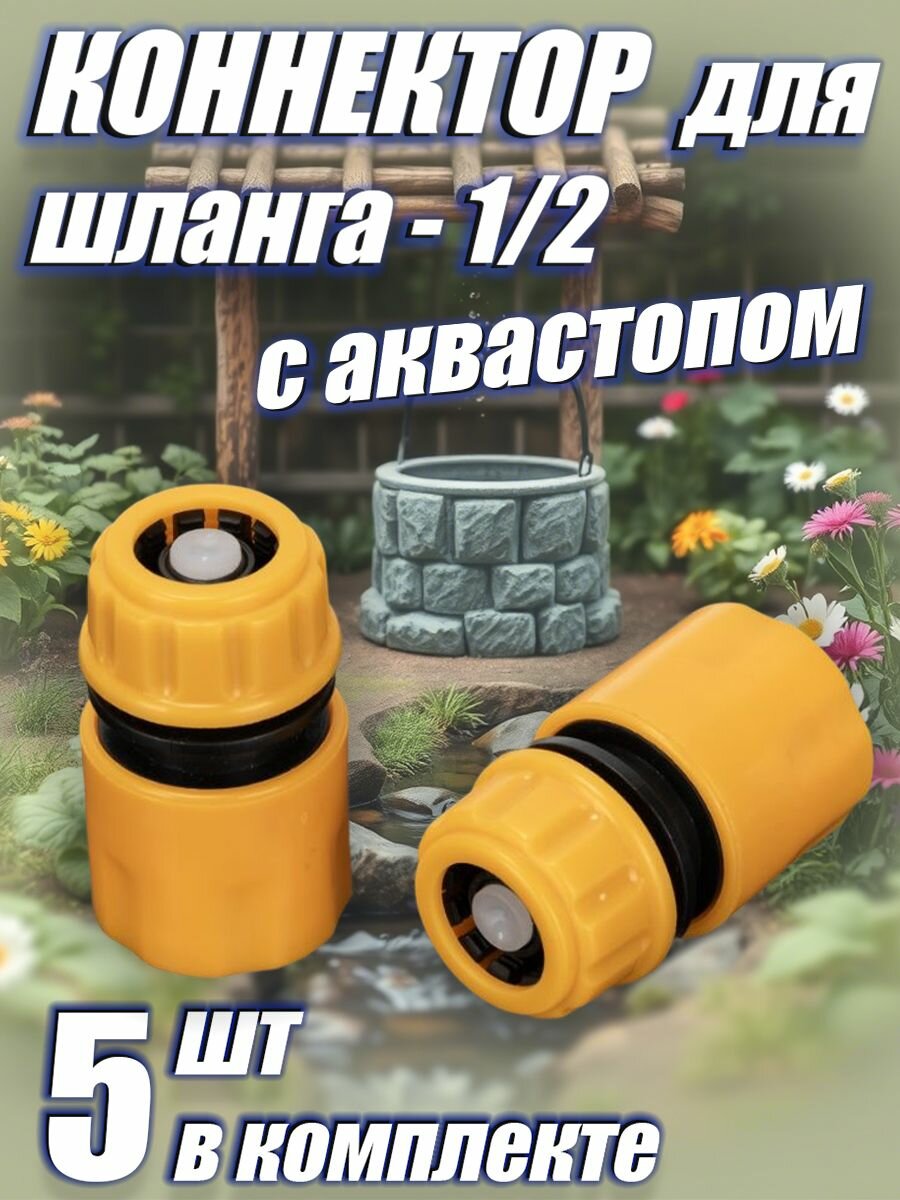 Коннектор для садового шланга и пистолета 1/2 с аквастопом, ABS пластик / 5шт интересное: