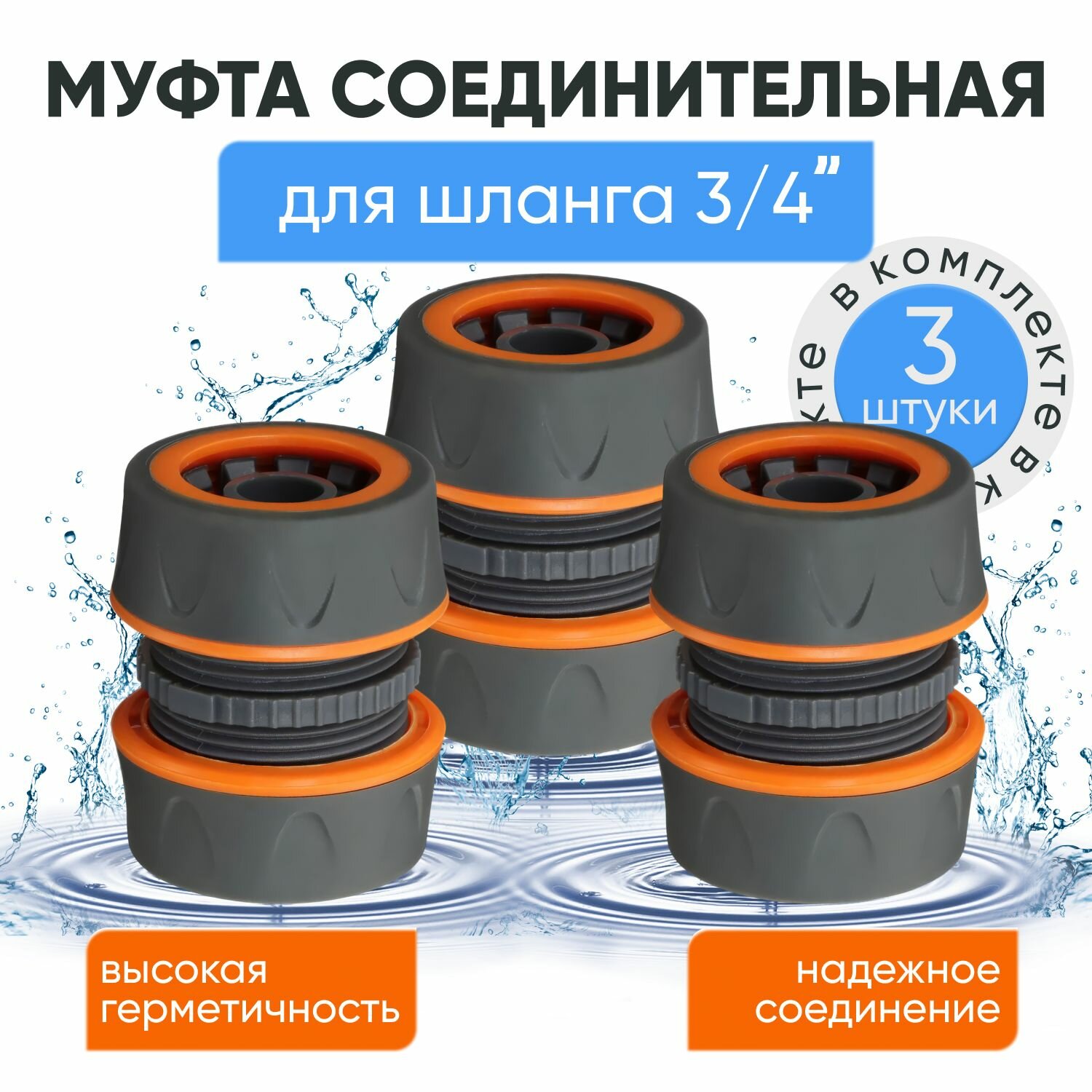 Муфта для шланга соединительная 3/4" дюйма / Переходник / 3 штуки интересное: