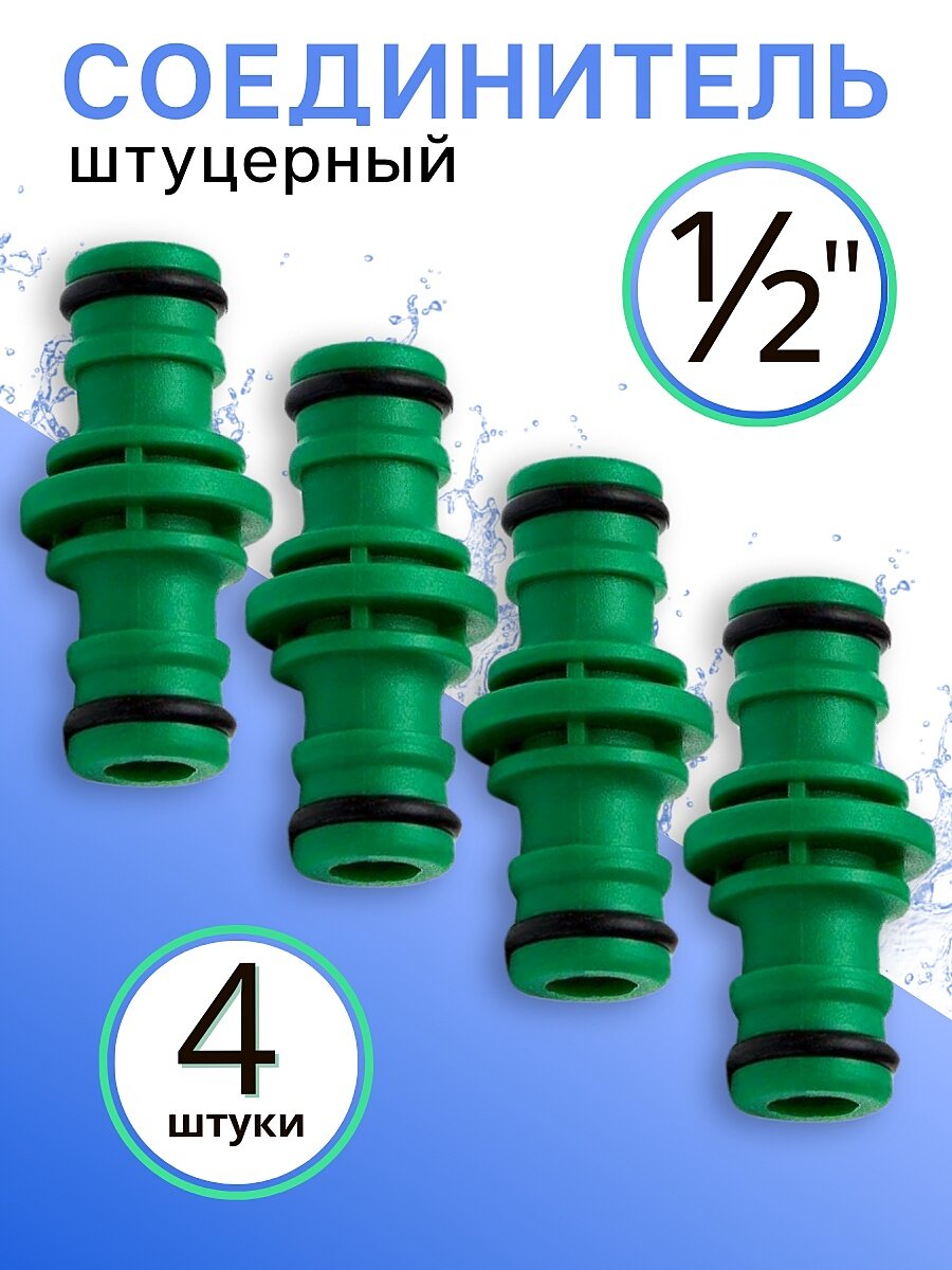 Соединитель для шлангов GreenPoliv, пластик, двойной, диаметр 1/2 дюйма, комплект 4 штуки интересное: