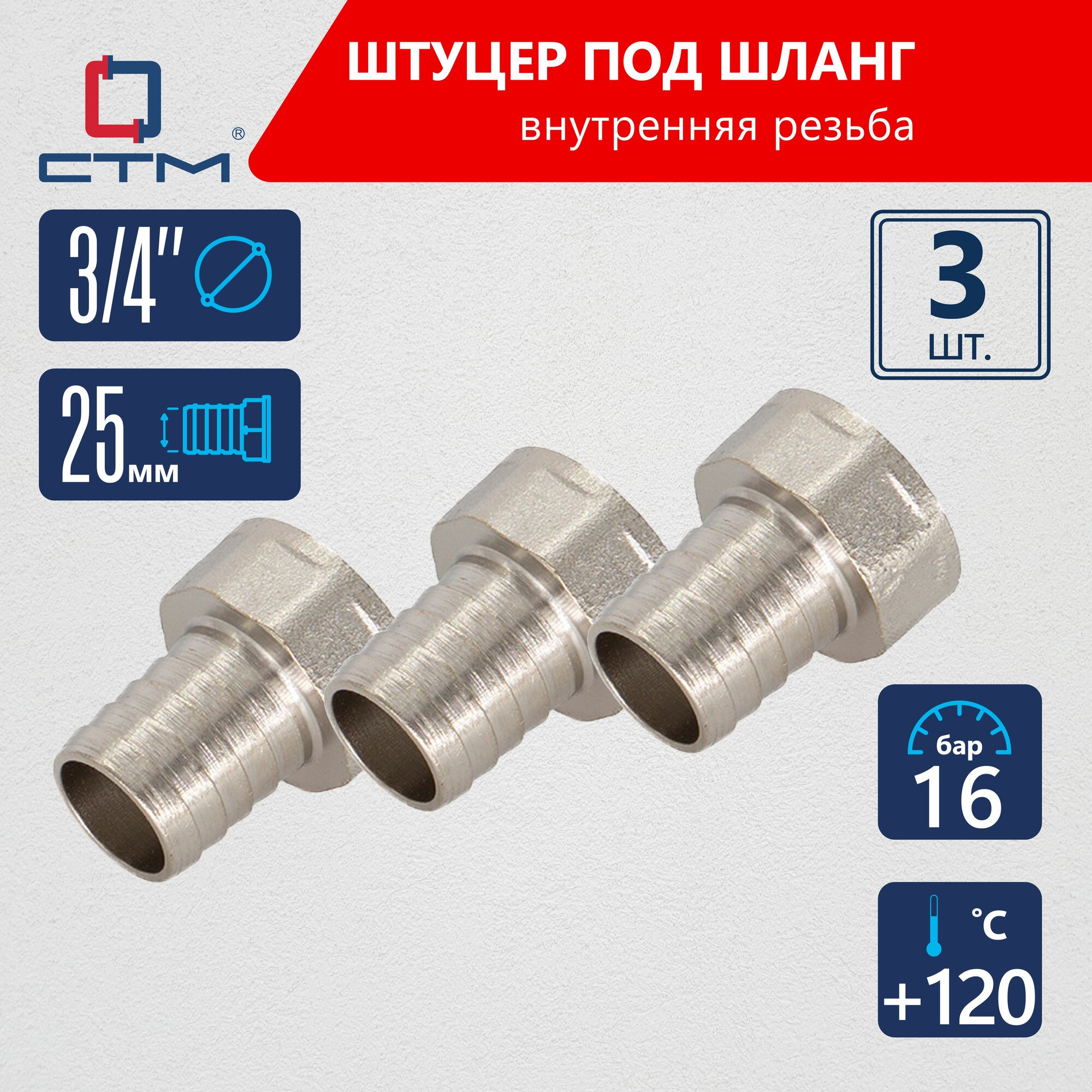 СохранитьШтуцер 3/4"х25 мм для шланга с внутренней резьбой CTM латунь 3 шт интересное: