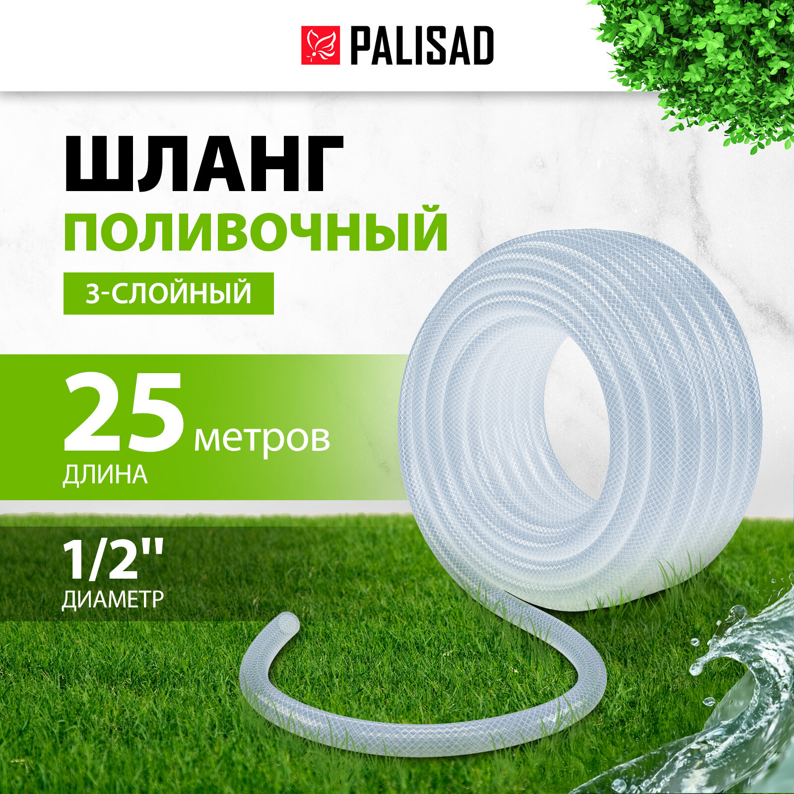 Купить Шланг поливочный Palisad прозрачный армированный 3-х слойный, 1/2", 25 м 67361