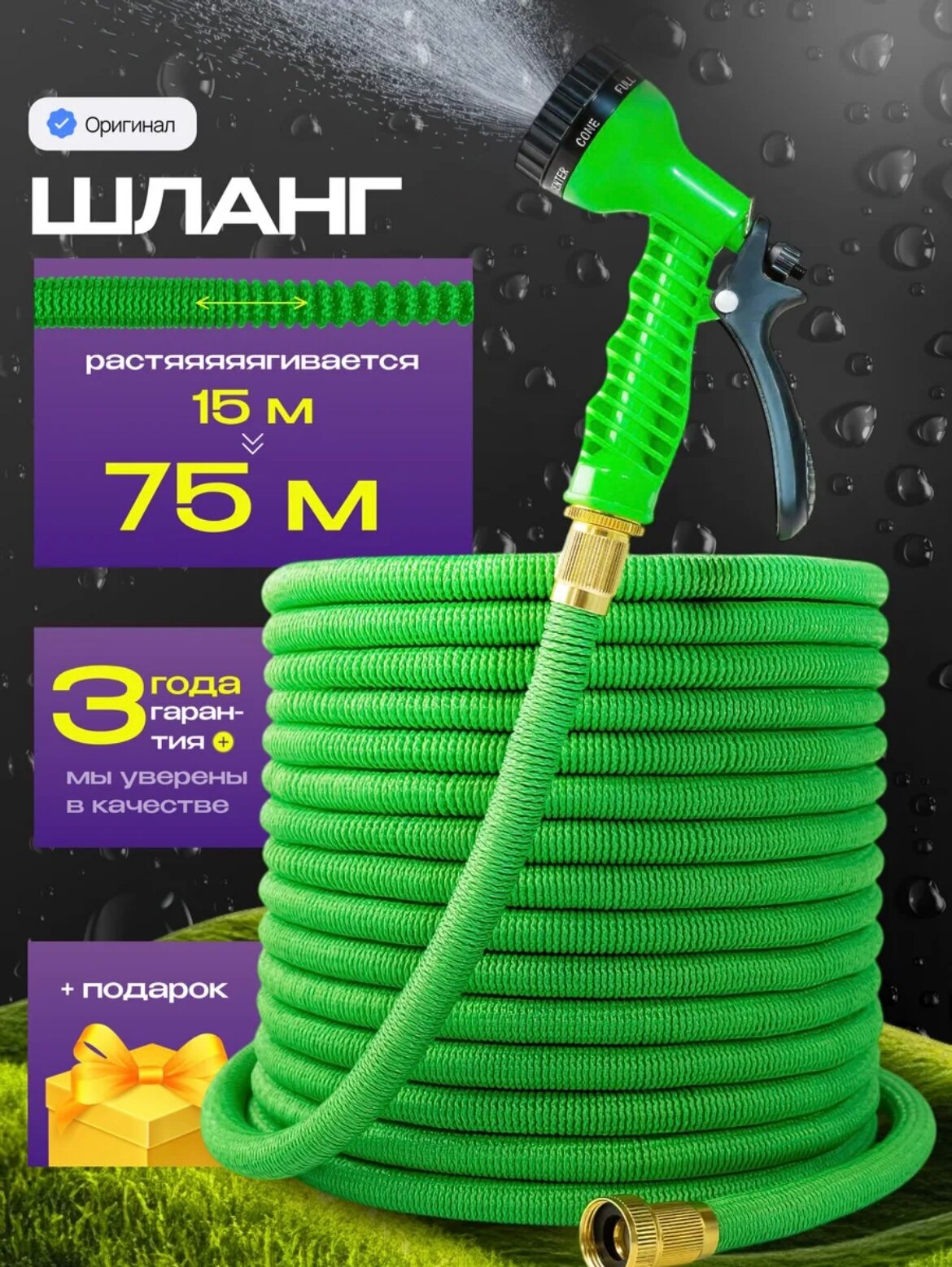 Шланг поливочный 3/4 растягивающийся садовый, 75 метров, для полива с насадкой, зеленый интересное: