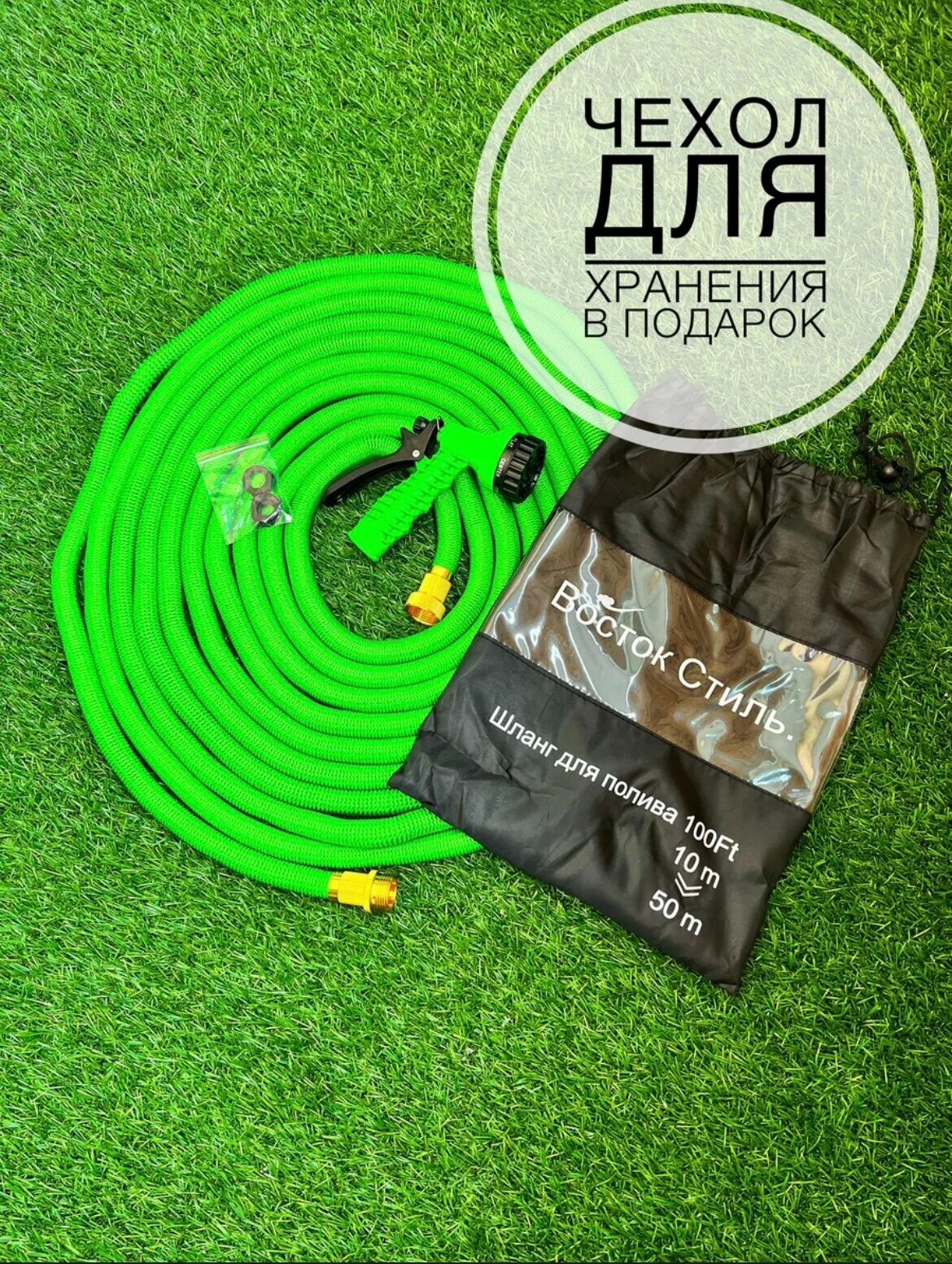Шланг поливочный 3/4 растягивающийся садовый, 50 метров, для полива с насадкой, зеленый