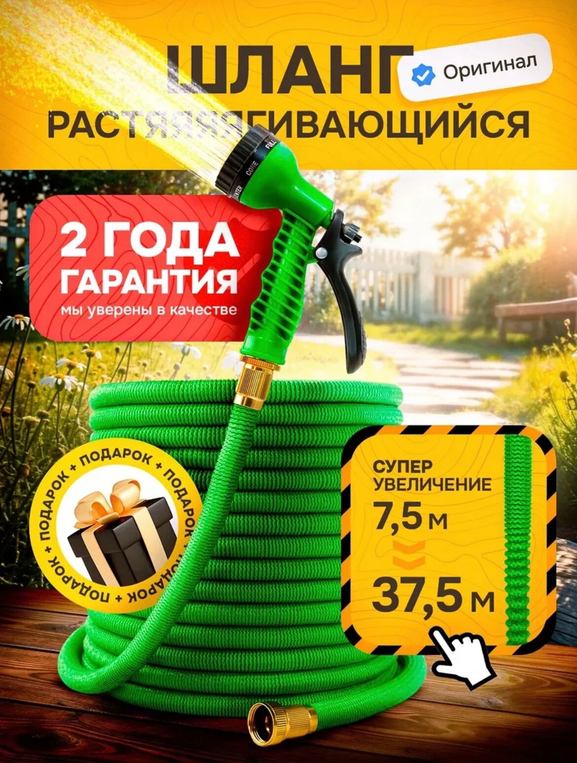 Шланг поливочный 3/4 растягивающийся садовый, 37 метров, для полива с насадкой, зеленый интересное: