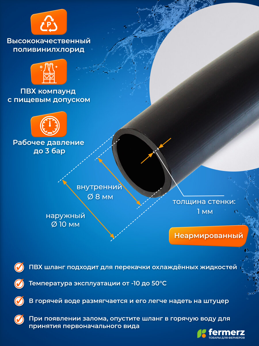 Шланг пищевой ПВХ 8 на 1 мм, толщина 1мм, бухта 1 метр, черный интересное: