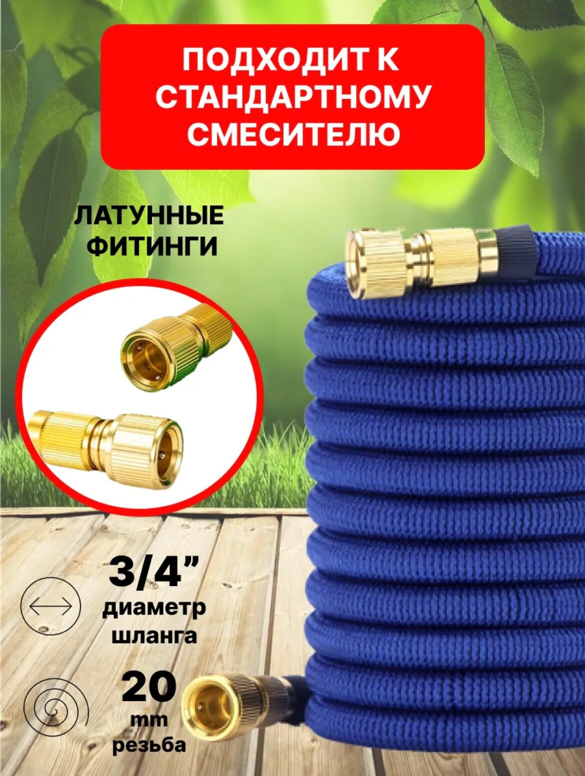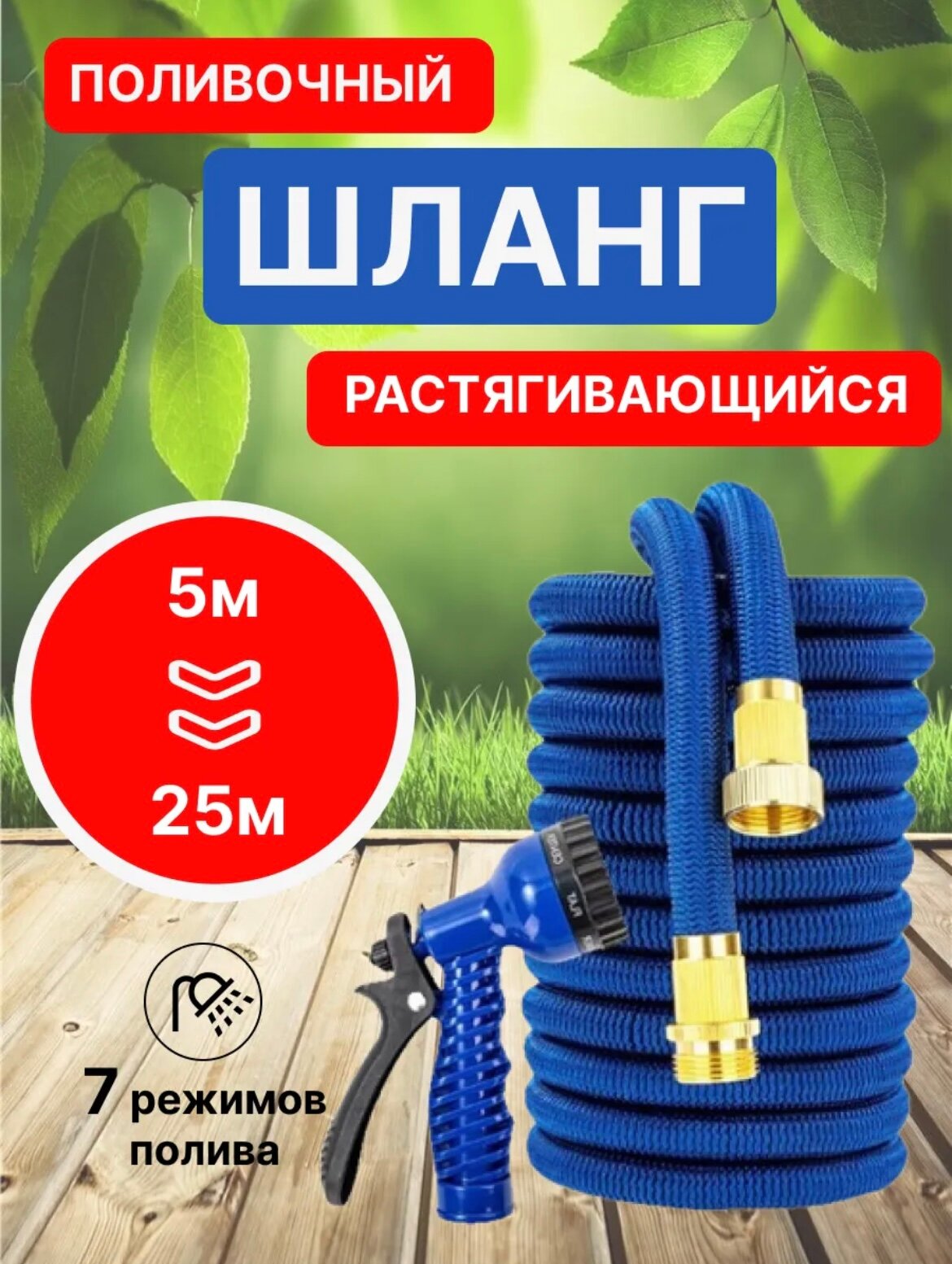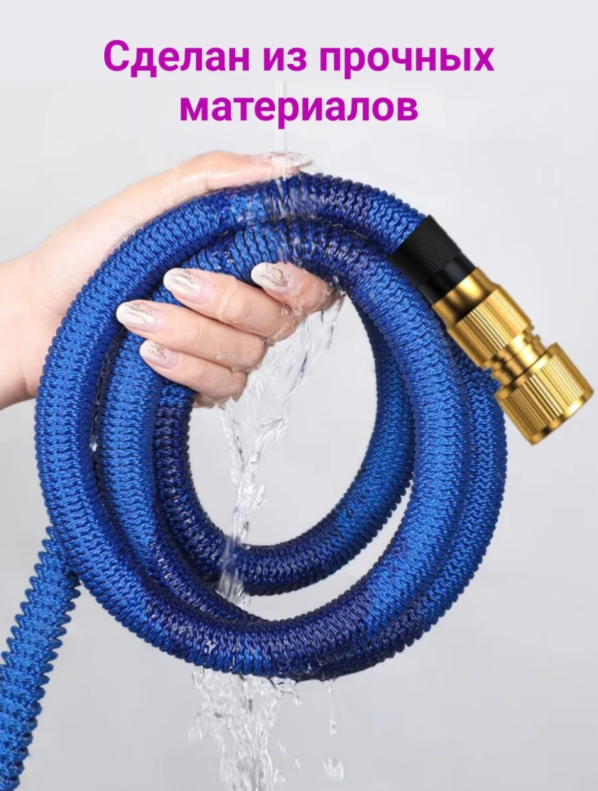 Шланг поливочный 3/4 растягивающийся садовый, 25 метров, для полива с насадкой, синий интересное: