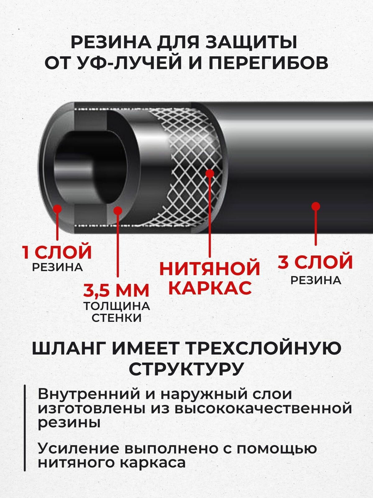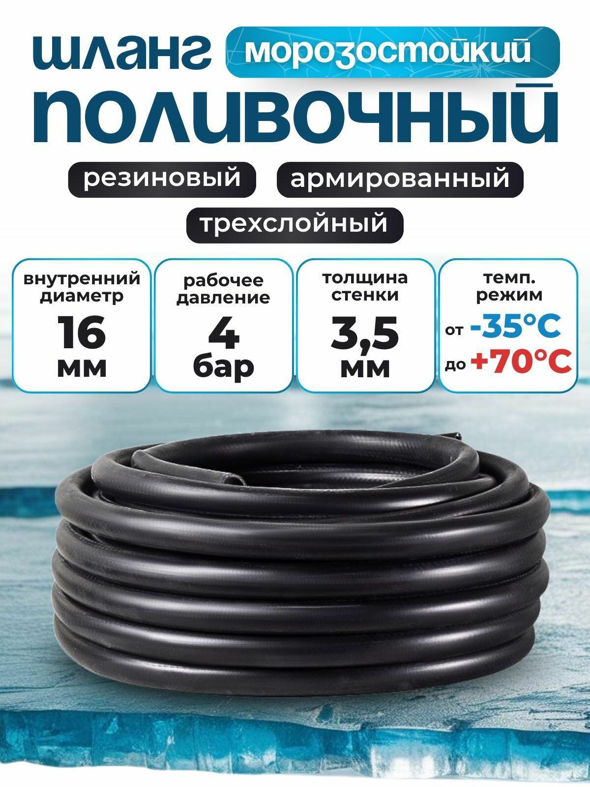 Шланг поливочный резиновый армированный нитью 16мм 3метра Толщ. стенки 3,5мм морозостойкий (t от -35 С до +70 С) интересное: