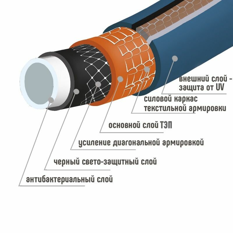 Шланг для полива шестислойный ПолимерШланг ТЭП PRESTIGE 3/4", 25 м, защита от UV лучей, антибактериальный интересное: