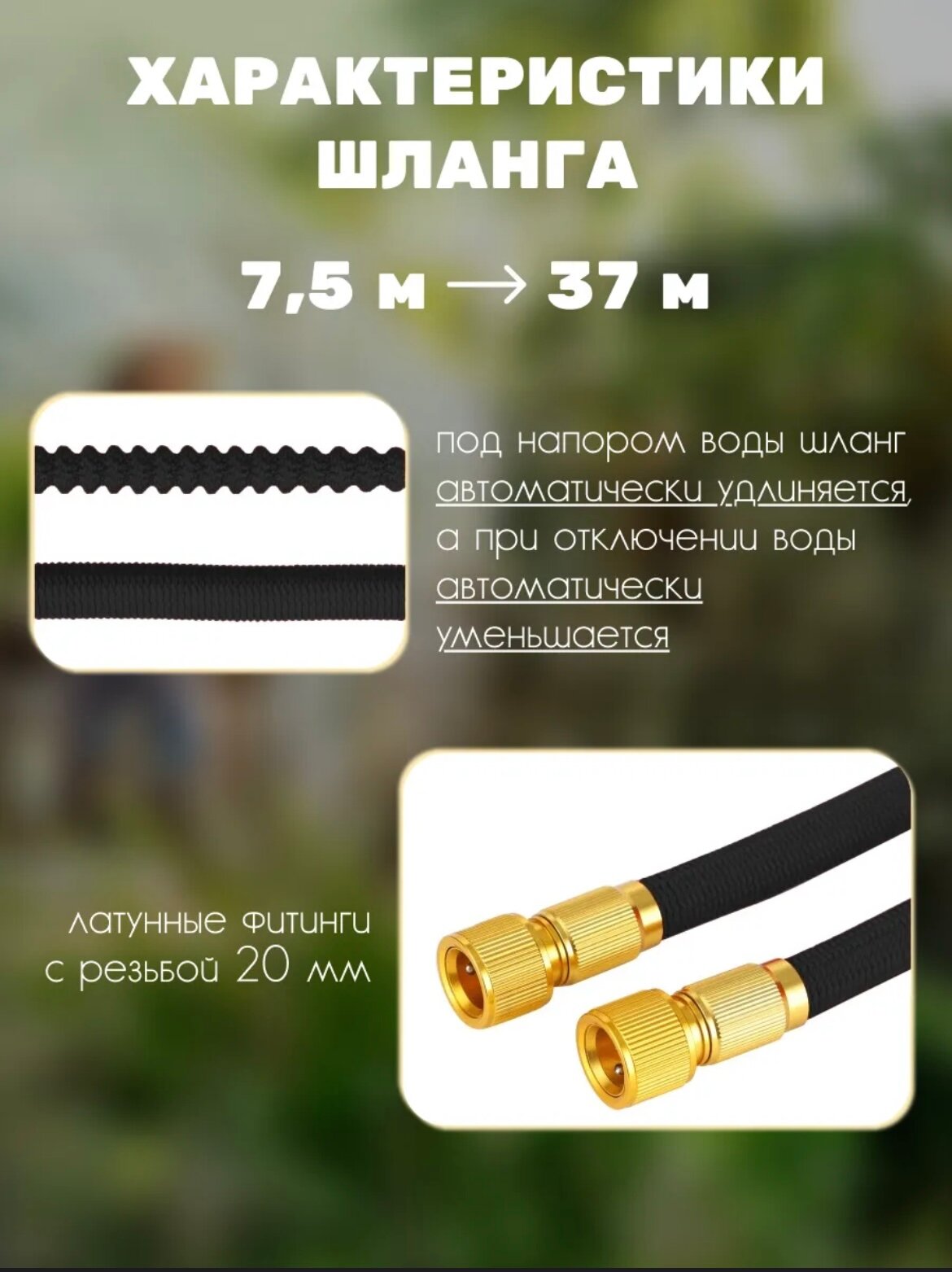 Шланг поливочный 3/4 растягивающийся садовый, 37 метров, для полива с насадкой, черный интересное: