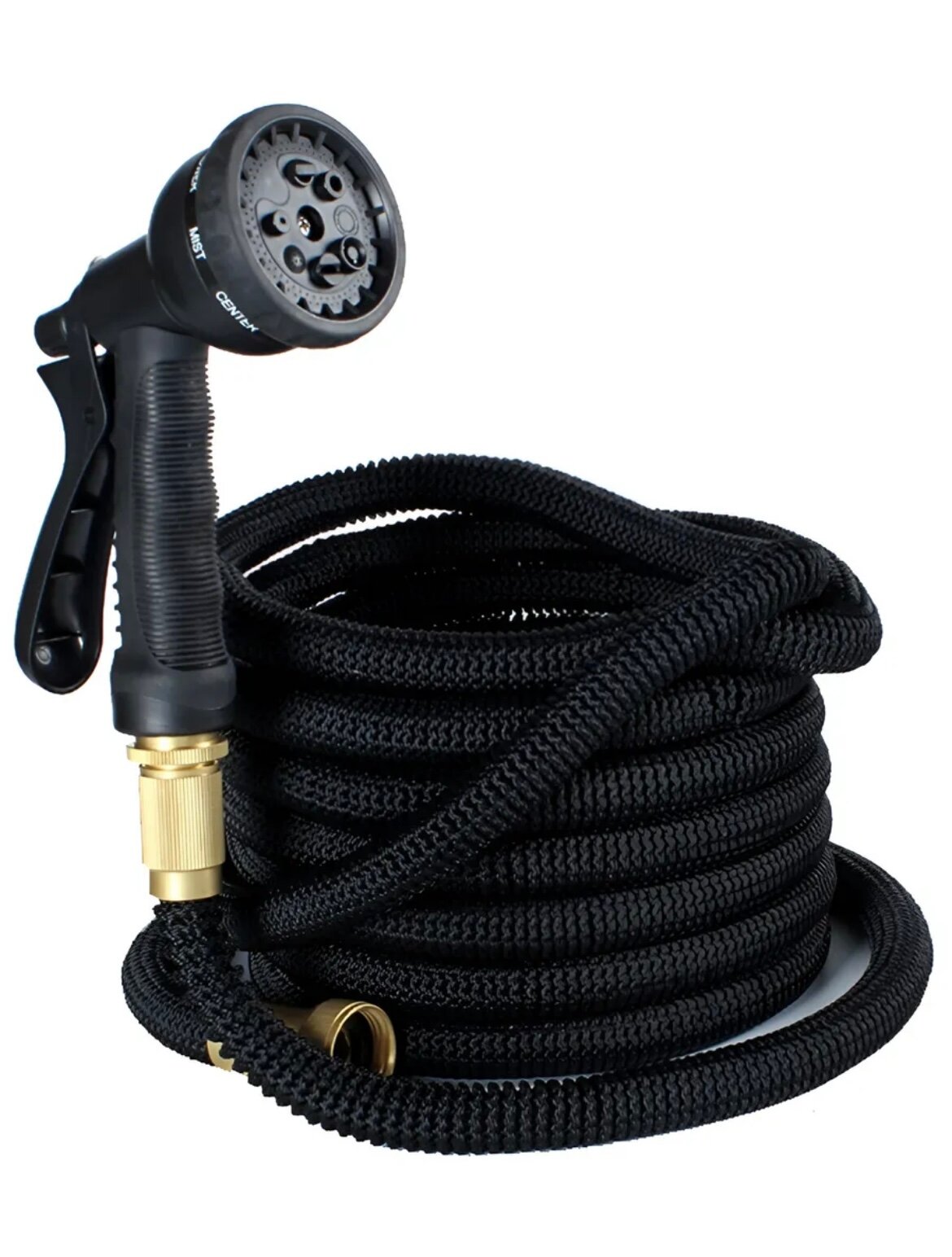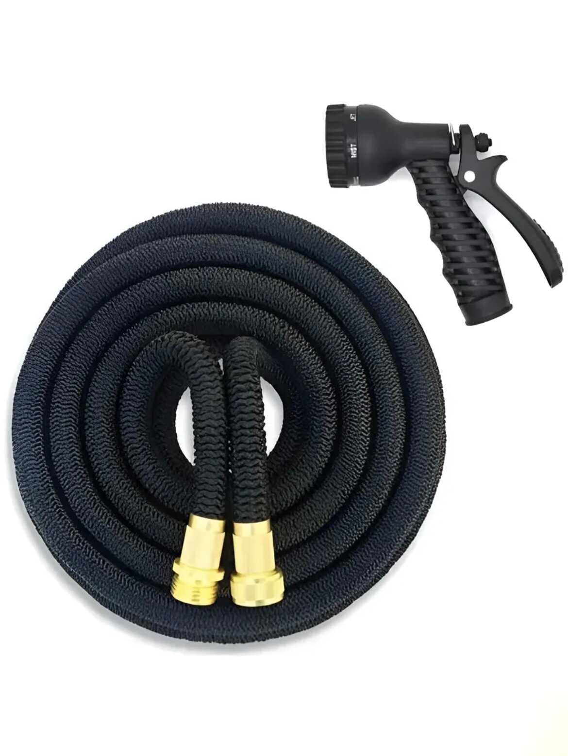 Шланг поливочный 3/4 растягивающийся садовый, 50 метров, для полива с насадкой, черный