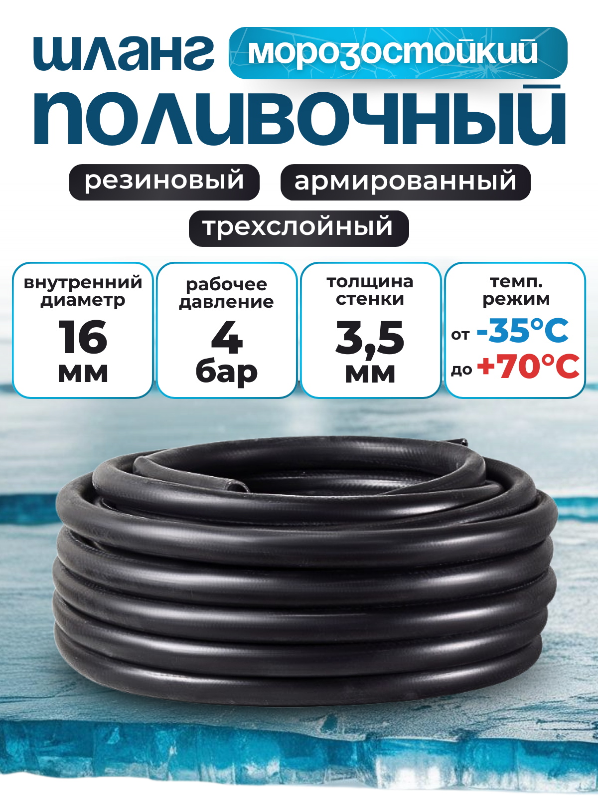 Шланг поливочный резиновый армированный нитью 16мм 10м Толщ. стенки 3,5мм морозостойкий (t от -35 С до +70 С)