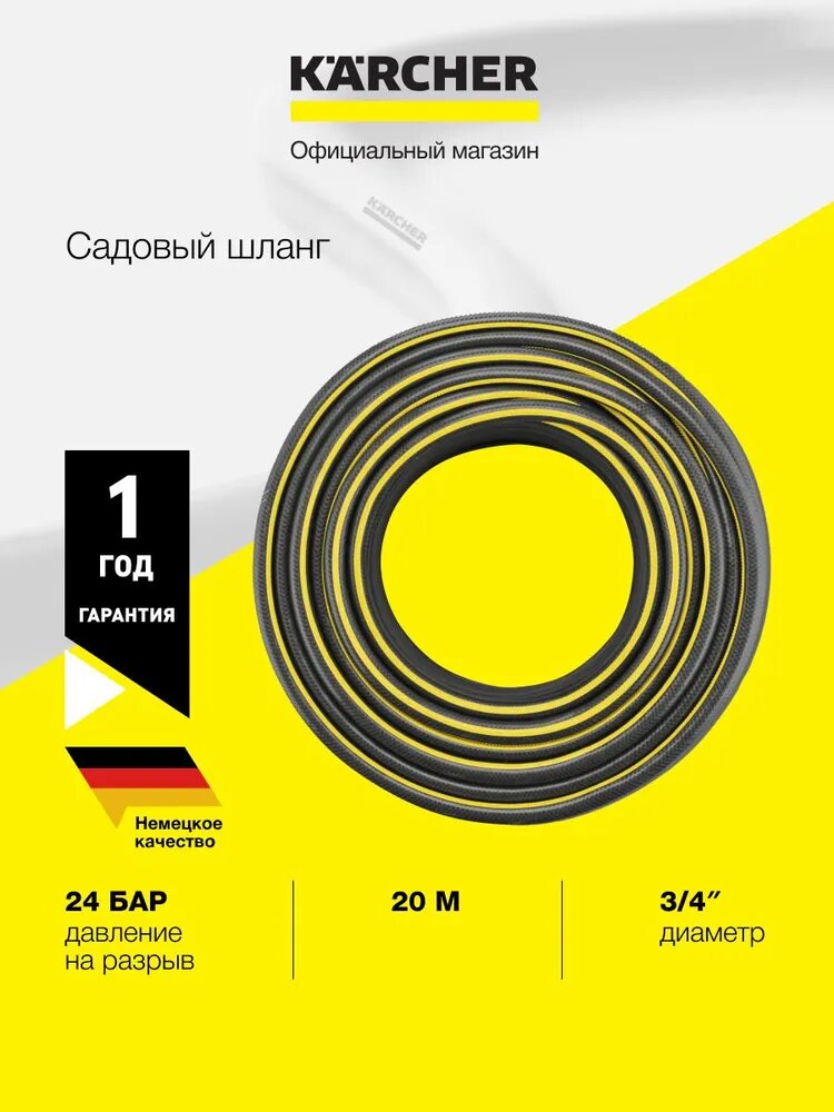 Шланг поливочный садовый Karcher (9.739-668.0) 20 м, 3/4", максимальное давление 24 бар интересное: