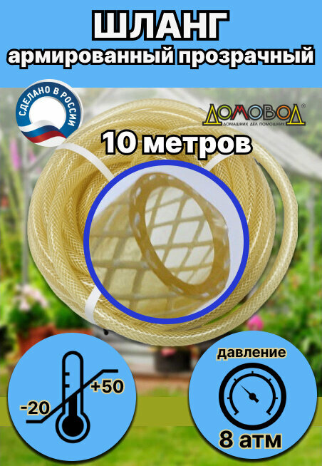 "ДомовоД" - поливочный шланг из силикона, 3-слойный, прозрачный, 12мм, 30м, всесезонный