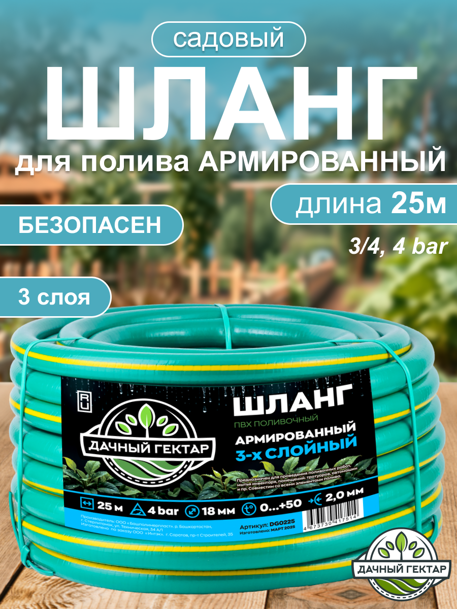 Шланг поливочный ПВХ 3-х слойный армированный 18мм/25м "Дачный Гектар" толщина 2мм /4 bar интересное: