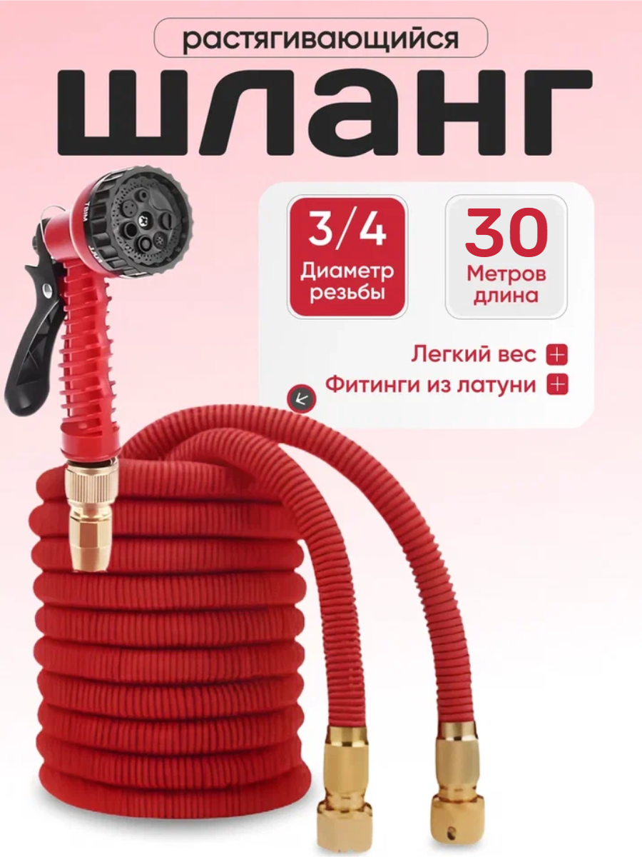 Купить Шланг Magic Garden Hose, 3/4", автоматический, растягивается, длина 30 м, красный