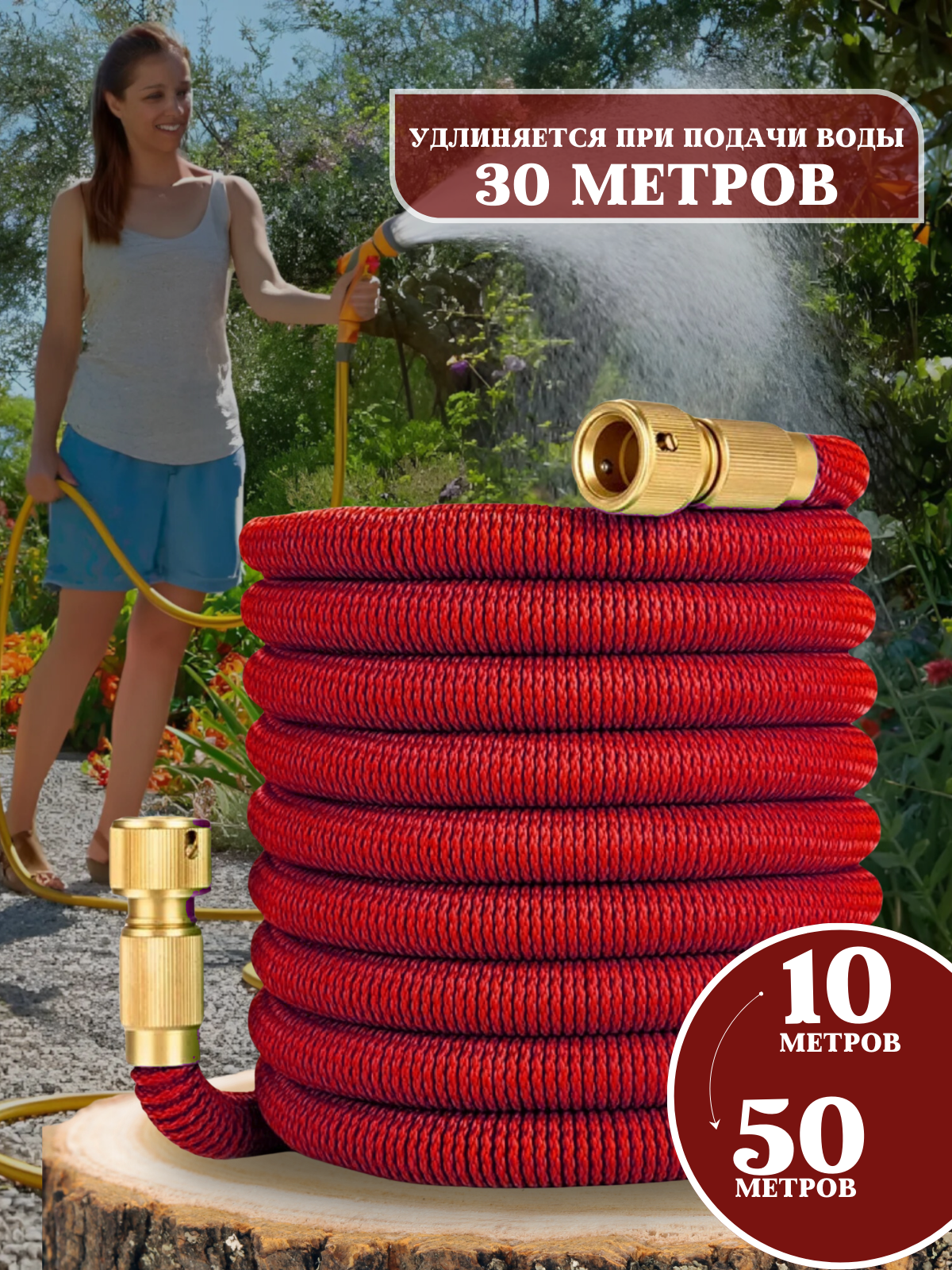 Поливочный шланг 50 метров, растягивающийся шланг для полива без быстросъема с насадкой распылителем, для дачи, садовый, удлиняющийся интересное:
