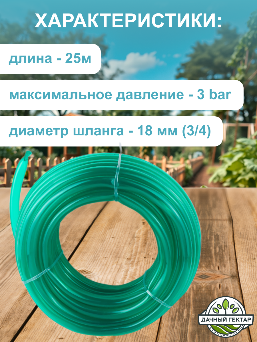 Шланг поливочный ПВХ силиконовый прозрачный цветной 18мм/25м "Дачный Гектар" толщина1,6мм /3bar интересное: