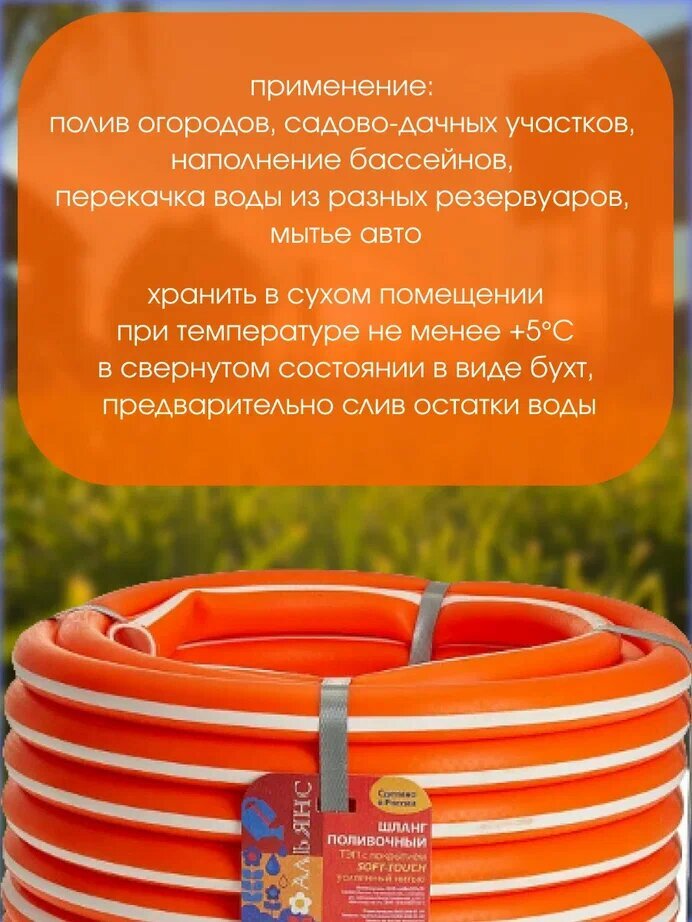 Шланг поливочный 20 мм, 20 м, ТЭП с покрытием Soft-touch усиленный нитью альянс оранжевый интересное: