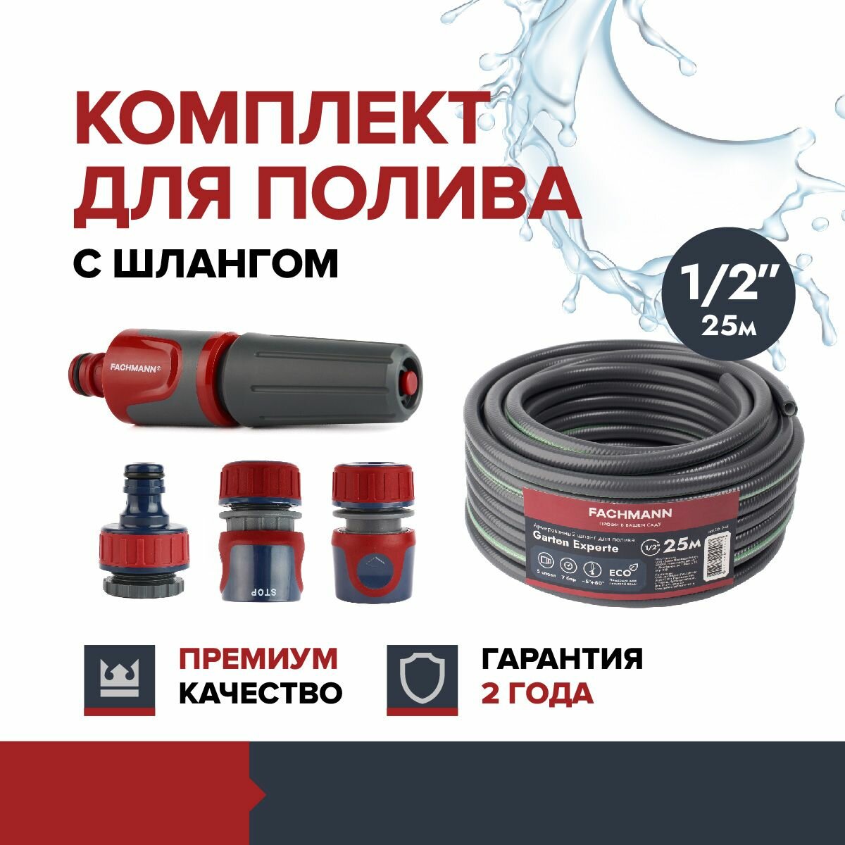 Набор шланг садовый, поливочный 1/2 ПВХ 25 м, 5-ти слойный Garten Expert, и набор коннекторов с наконечником для полива интересное: