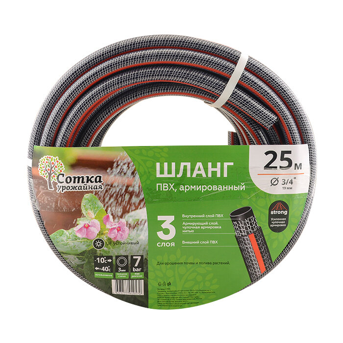 Купить Шланг поливочный садовый "Урожайная сотка" ПВХ, армированный для сада и огорода d=3/4 (19 мм) (25 м) Экстра