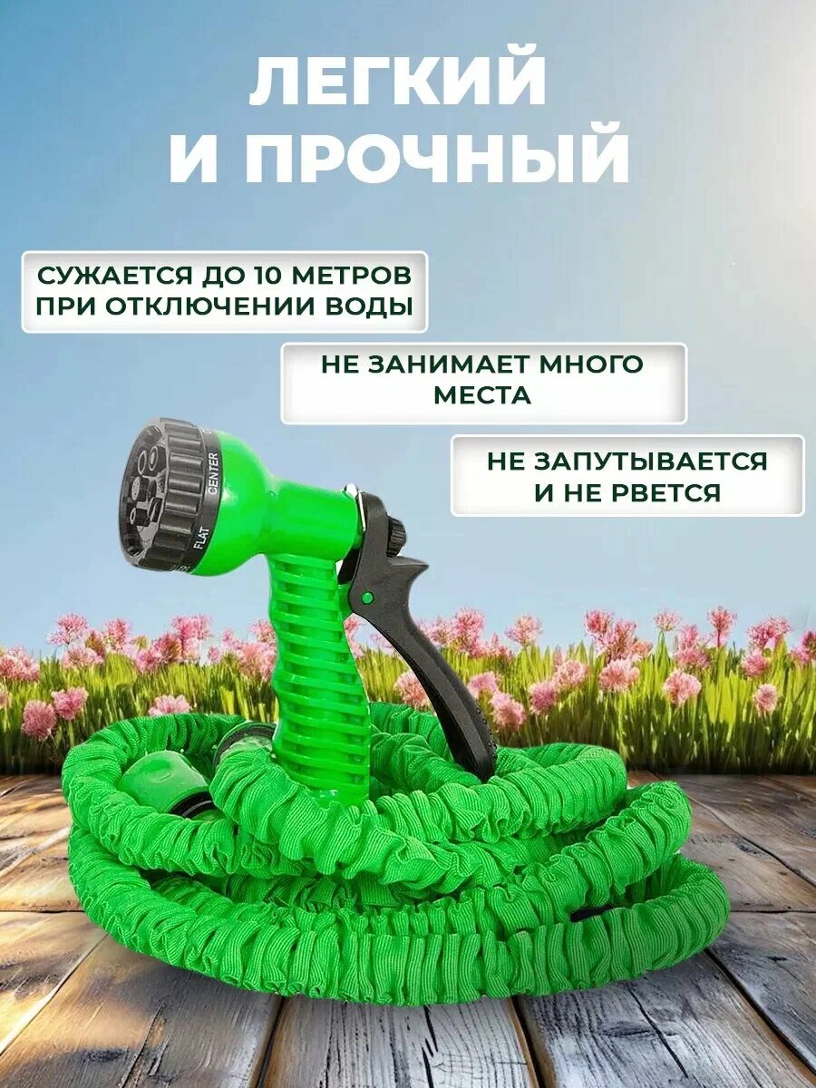 СохранитьШланг садовый растягивающийся 100 метров для полива с распылителем/ 100 метров зеленый с металлическим соединением интересное: