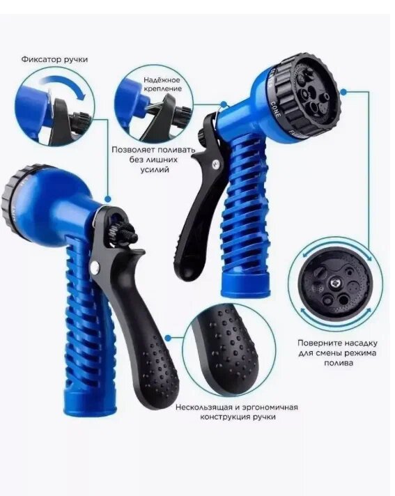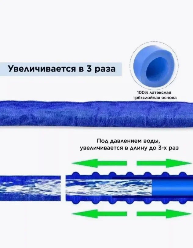 СохранитьШланг садовый растягивающийся 100 метров для полива с распылителем/ 100 метров синий с металлическим соединением интересное: