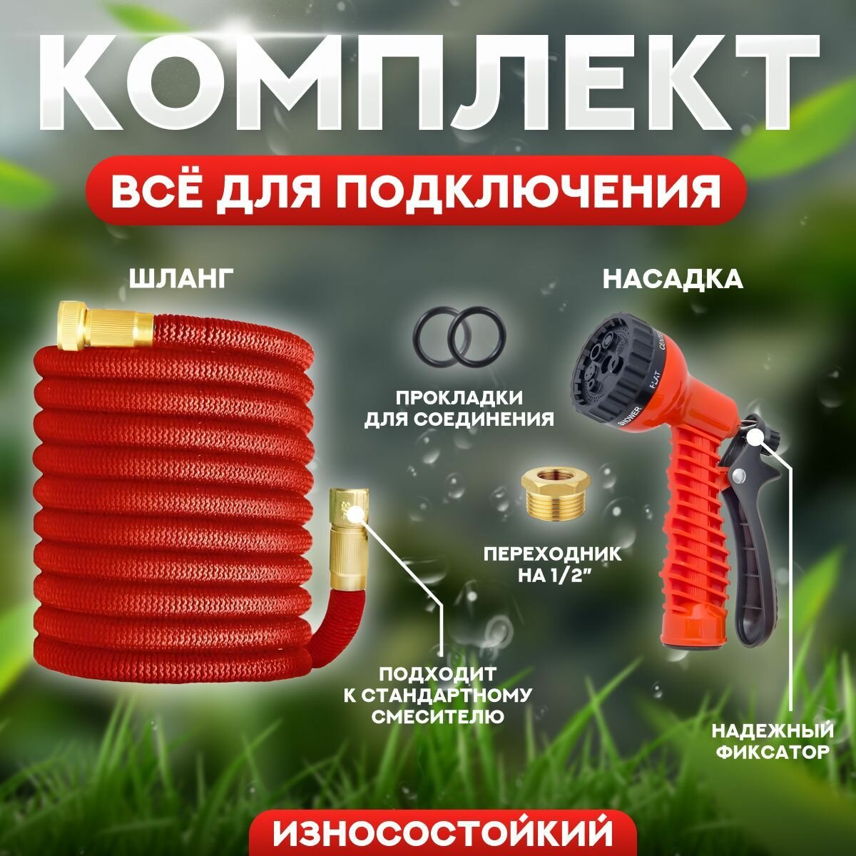 Шланг для полива растягивающийся садовый FGS 25 метров + подарок переходник с 3/4" на 1/2" интересное: