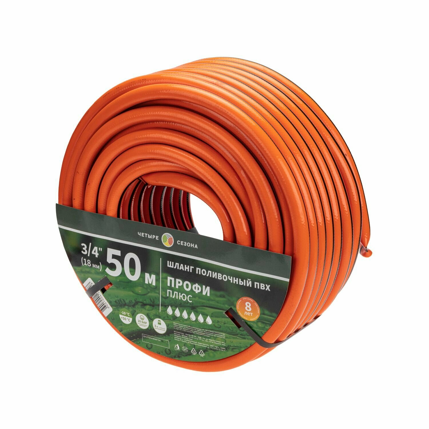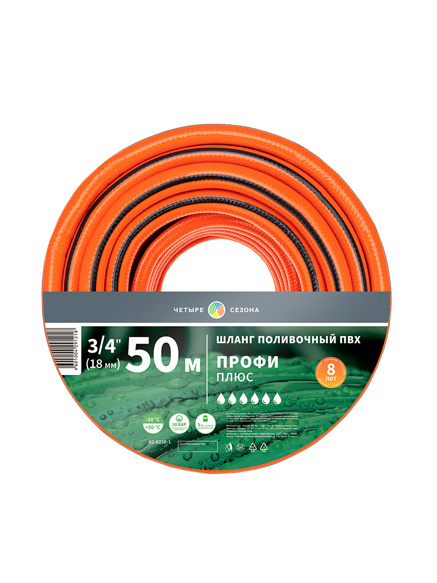 Шланг поливочный садовый из ПВХ 3/4" 3-х слойный армированный длина 50 метров Четыре Сезона