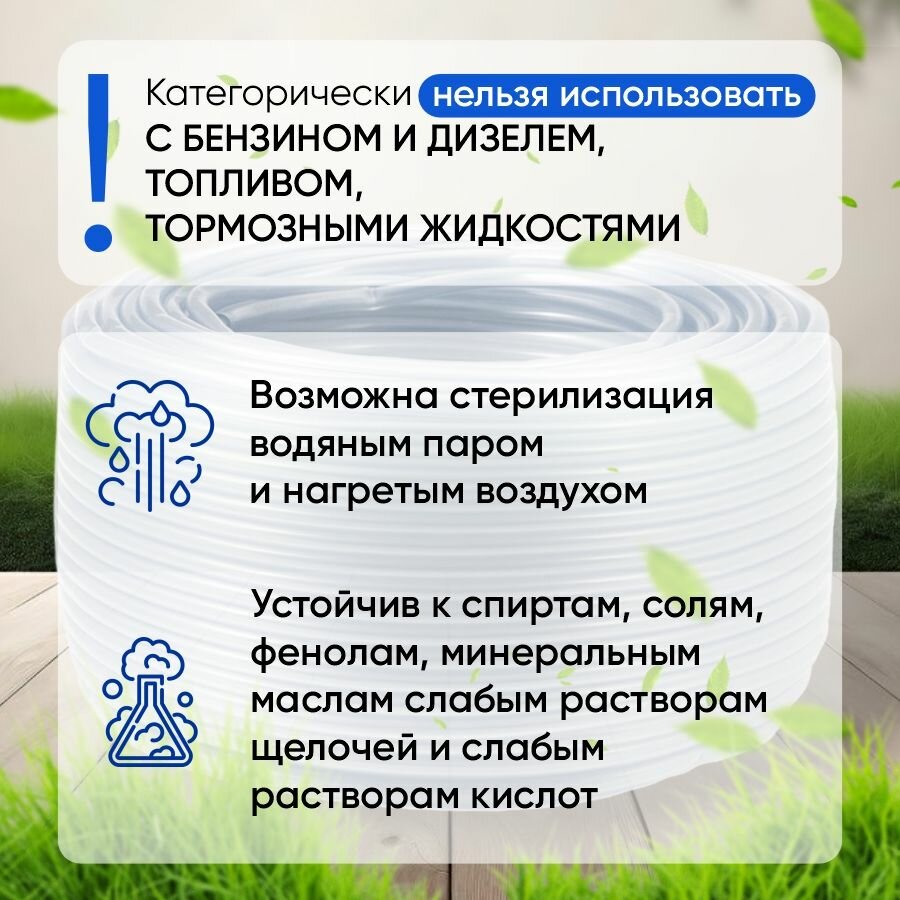 Шланг ПВХ прозрачный пищевой 10 мм, стенка 1.5, 5 м / Трубка ПВХ / Трубка капилярка